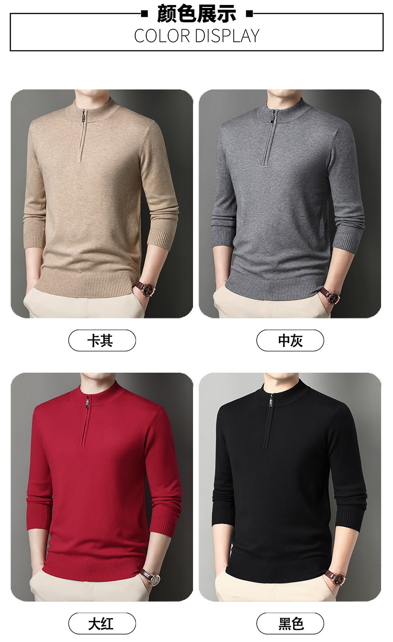 겨울 남자 하프 터틀넥 스웨터 중년 남성 솔리드 컬러 하프 지퍼 루즈 니트베이스 셔츠 남자 원피스 헤어스토어 가기