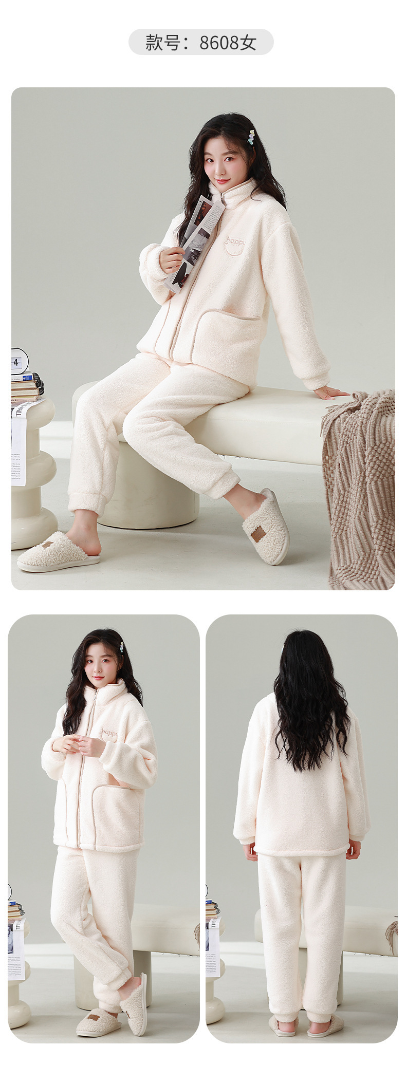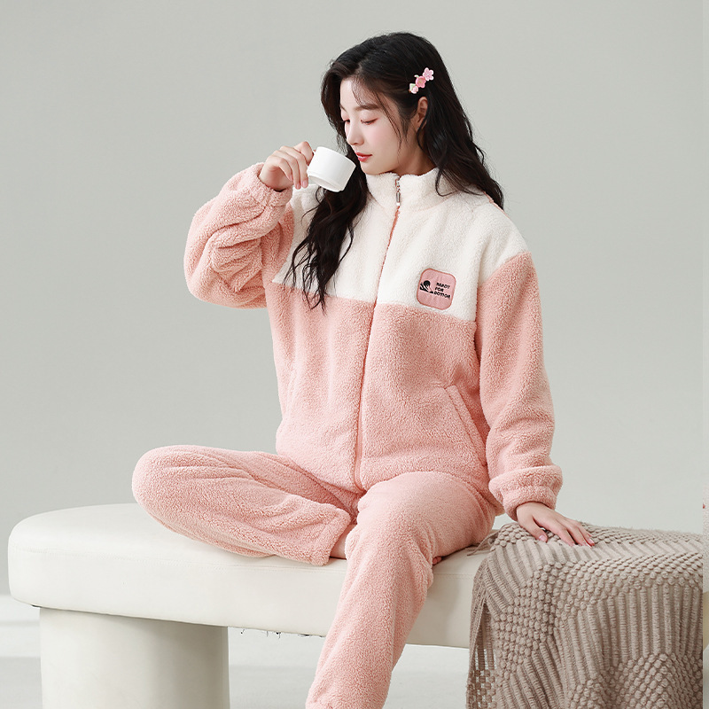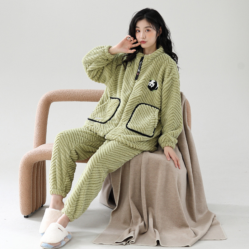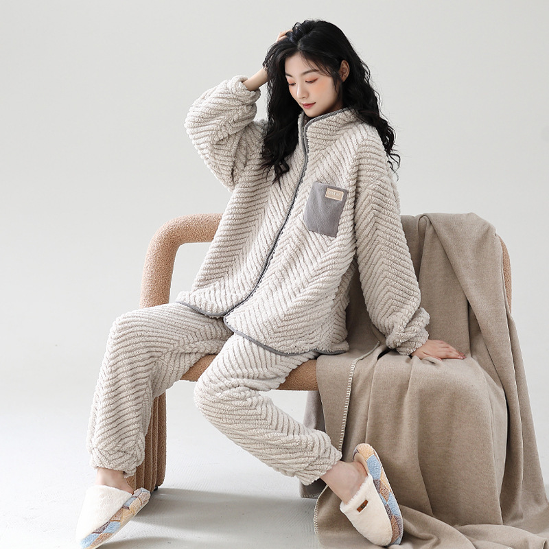 산호 양털 파자마 여성의 겨울 기모 두꺼운 따뜻한 여성의 가을과 겨울 플란넬 카디건 여성 플러스 사이즈 홈 옷