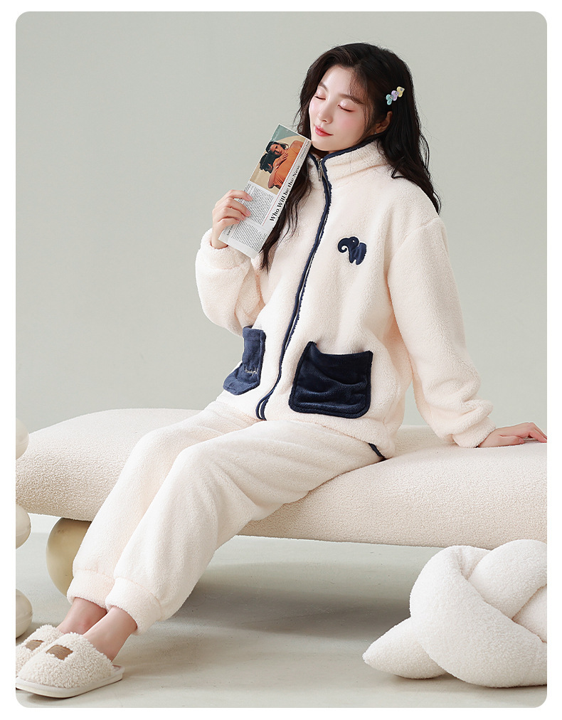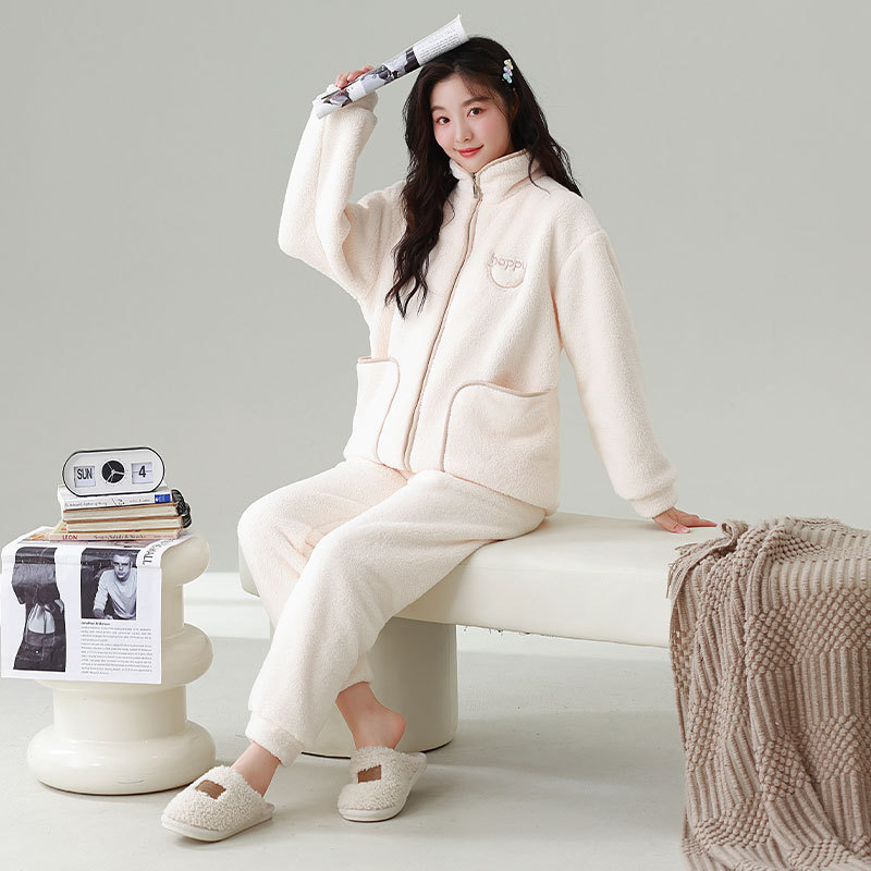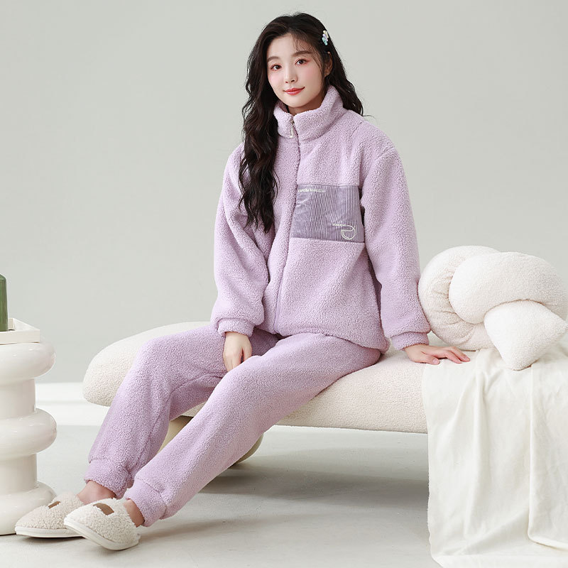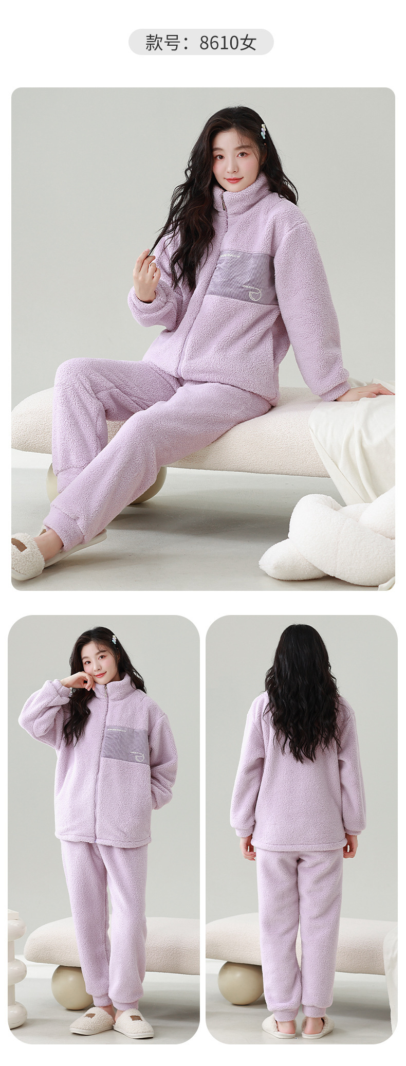 산호 양털 파자마 여성의 겨울 기모 두꺼운 따뜻한 여성의 가을과 겨울 플란넬 카디건 여성 플러스 사이즈 홈 옷