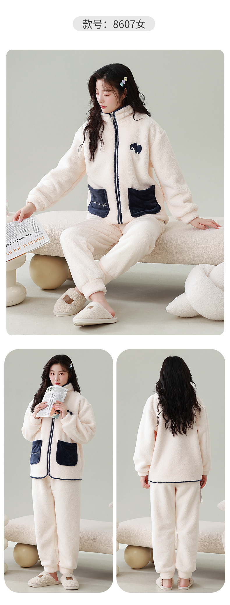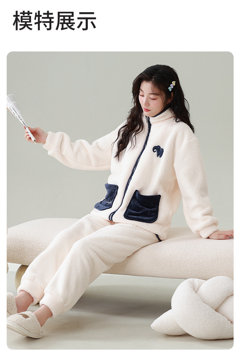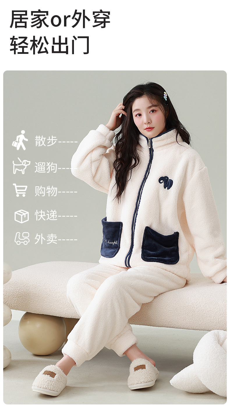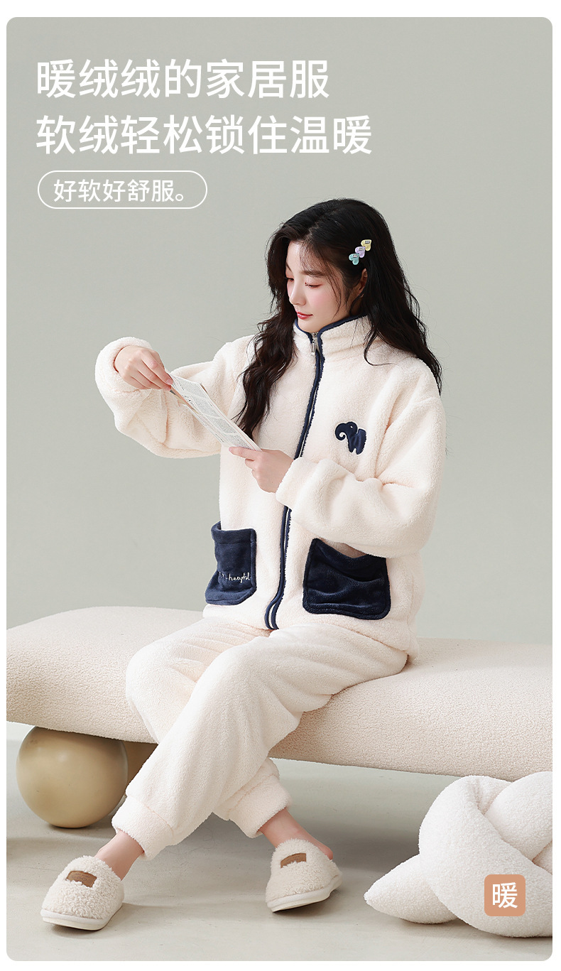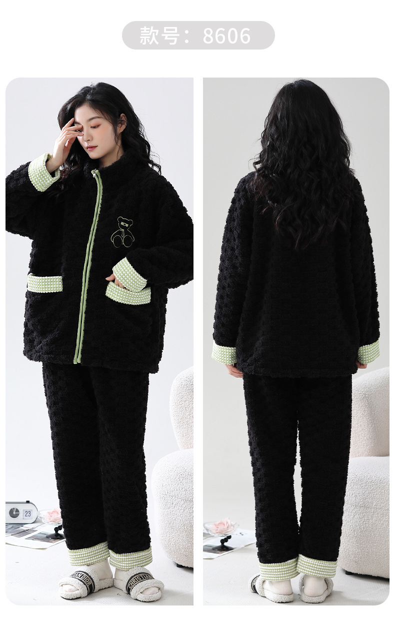 산호 양털 파자마 여성의 겨울 기모 두꺼운 따뜻한 여성의 가을과 겨울 플란넬 카디건 여성 플러스 사이즈 홈 옷스토어 가기