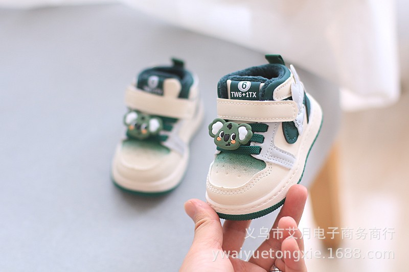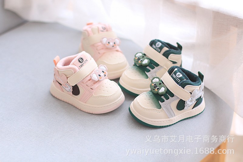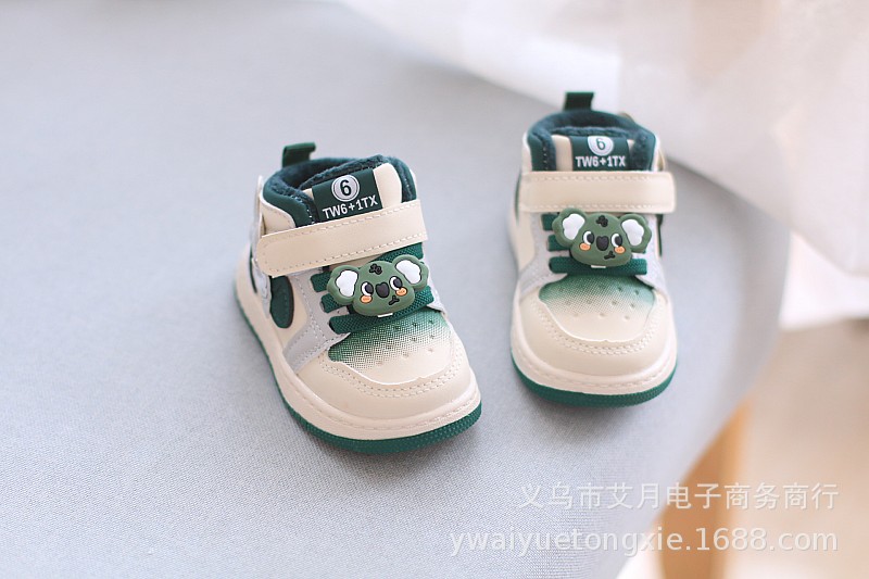 여성 아기 신발 가을과 겨울 새로운 작은 하이 탑 소년 운동화 얇은 코튼 유아 신발 만화 어린이 보드 신발 트렌디스토어 가기