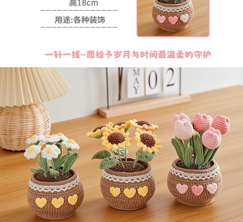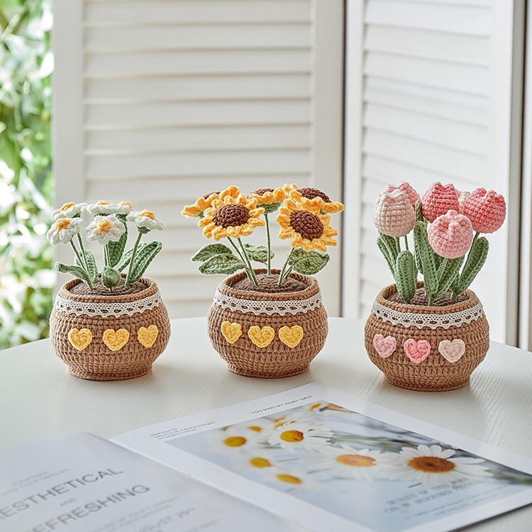 손으로 짠 DIY 울 꽃다발 소재 가방 해바라기 화분에 뜨개질 한 교사의 날 선물 교사스토어 가기