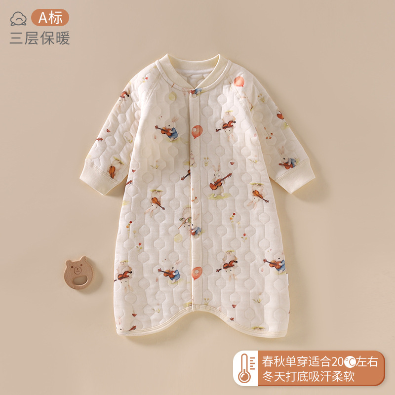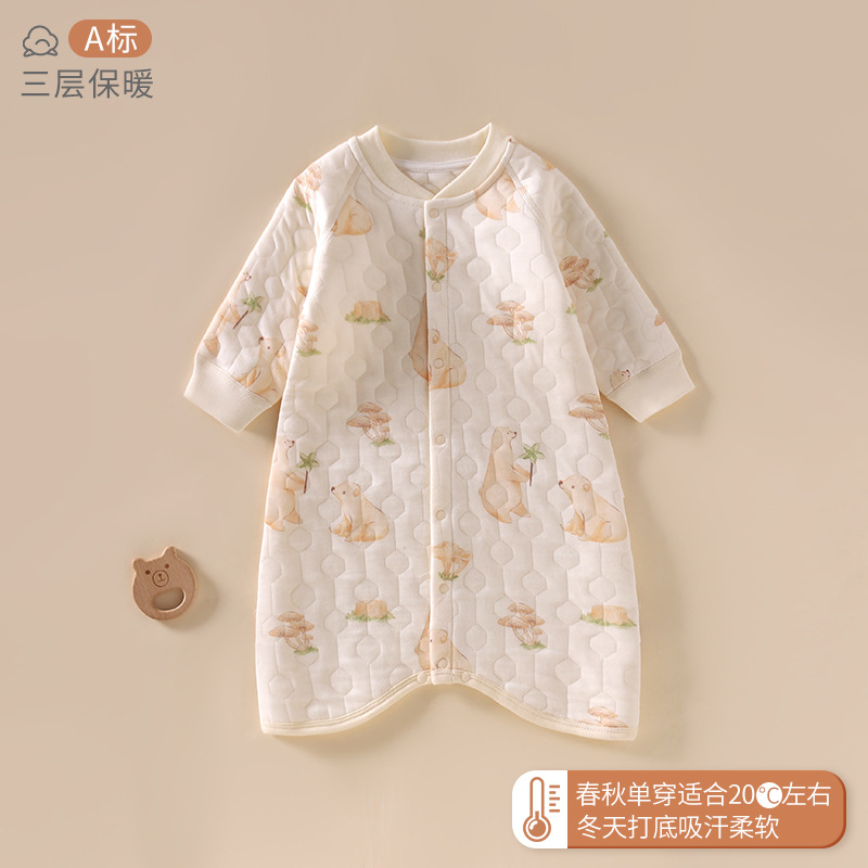 2024 가을과 겨울 새로운 어린이 3 층 퀼트 파자마 아기 두꺼운 침낭 소년 소녀 홈 의류 도매