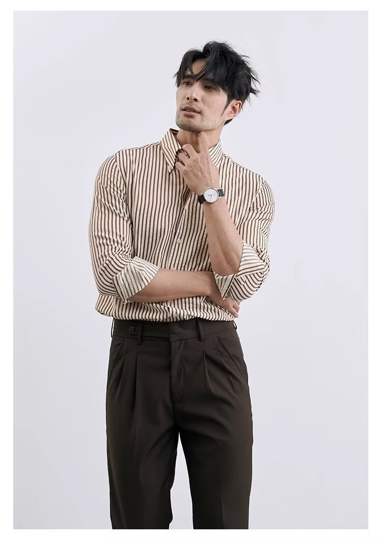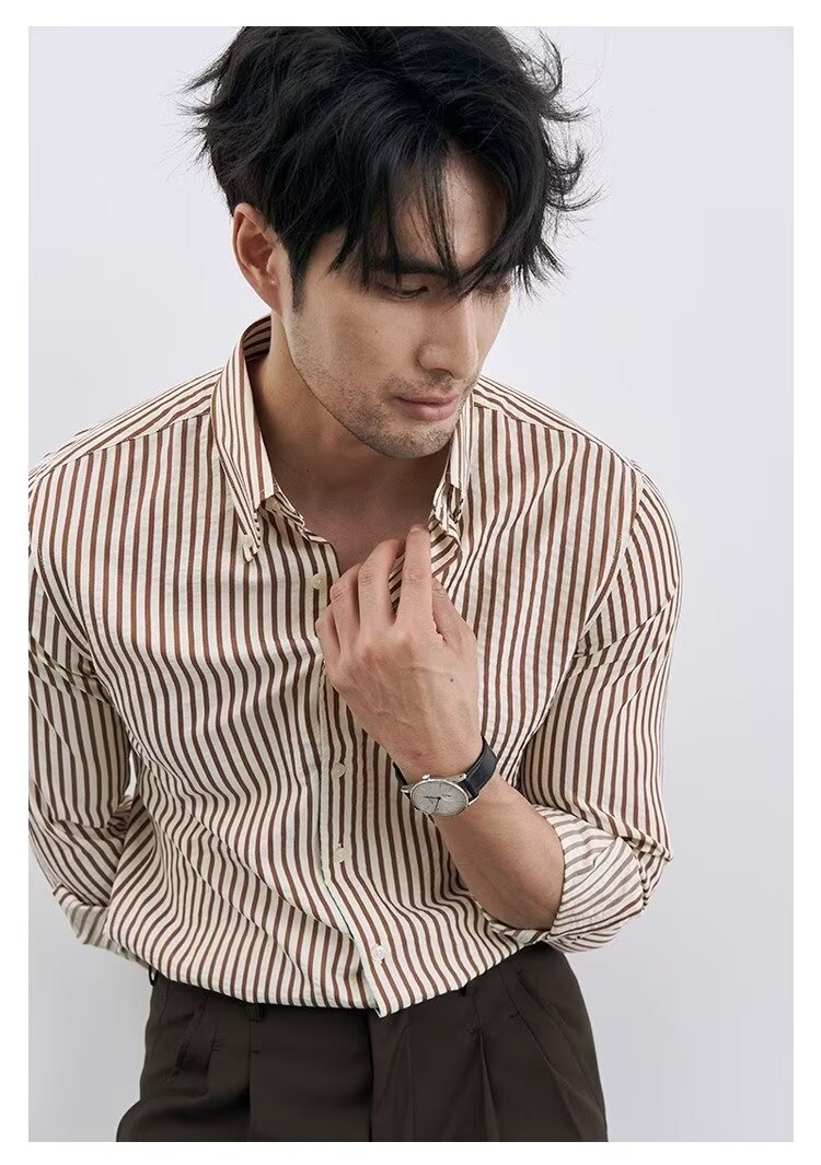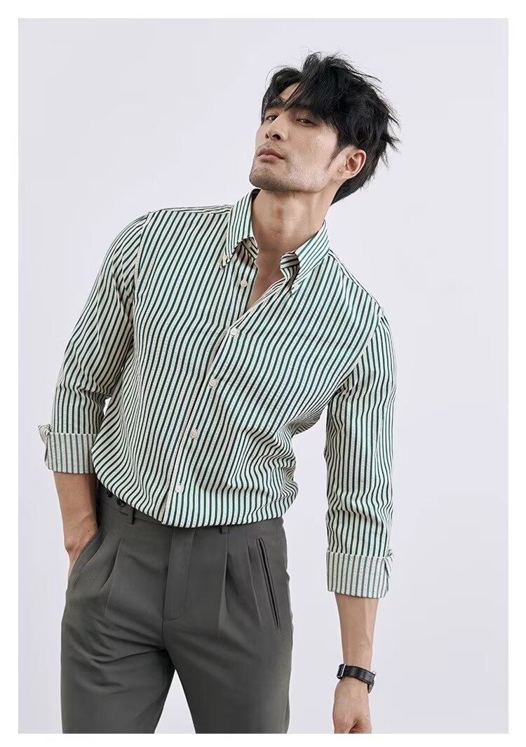 남성용 클래식 파란색과 흰색 줄무늬 캐주얼 비즈니스 셔츠 프랑스 느슨한 긴 소매 캐주얼 우아한 인테리어 셔츠 트렌디스토어 가기