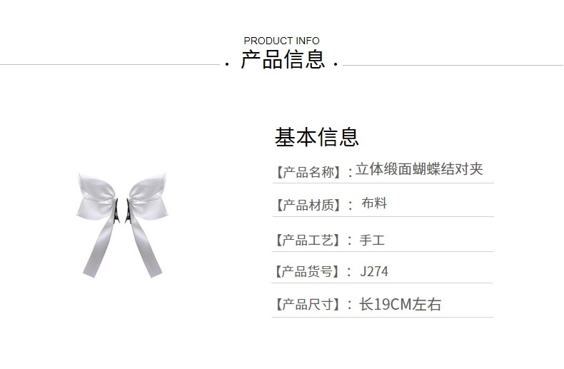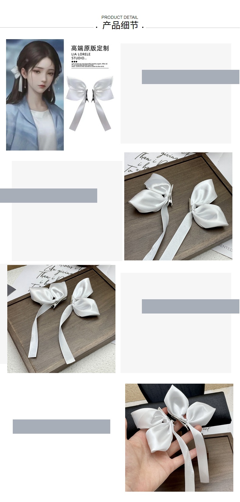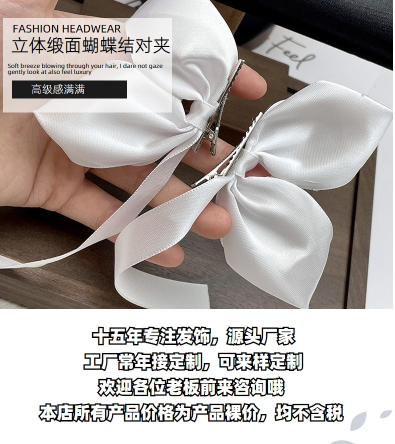 Du Yan의 같은 3 차원 새틴 활 쌍 헤어핀 틈새 디자인 센스 뱅 사이드 덕빌 헤어핀 여성