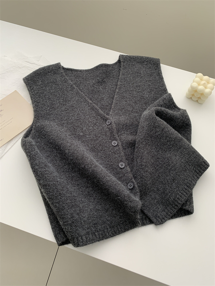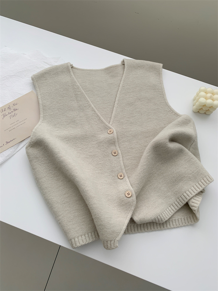 부드러운 레트로 V 넥 니트 조끼 여성 가을 및 겨울 게으른 올매치 스택 민소매 조끼 우아한 슬림 핏 카디건