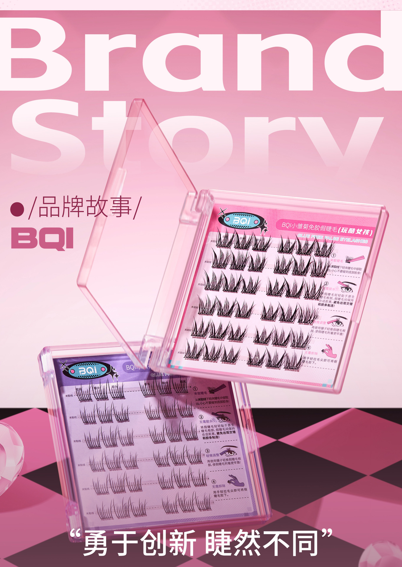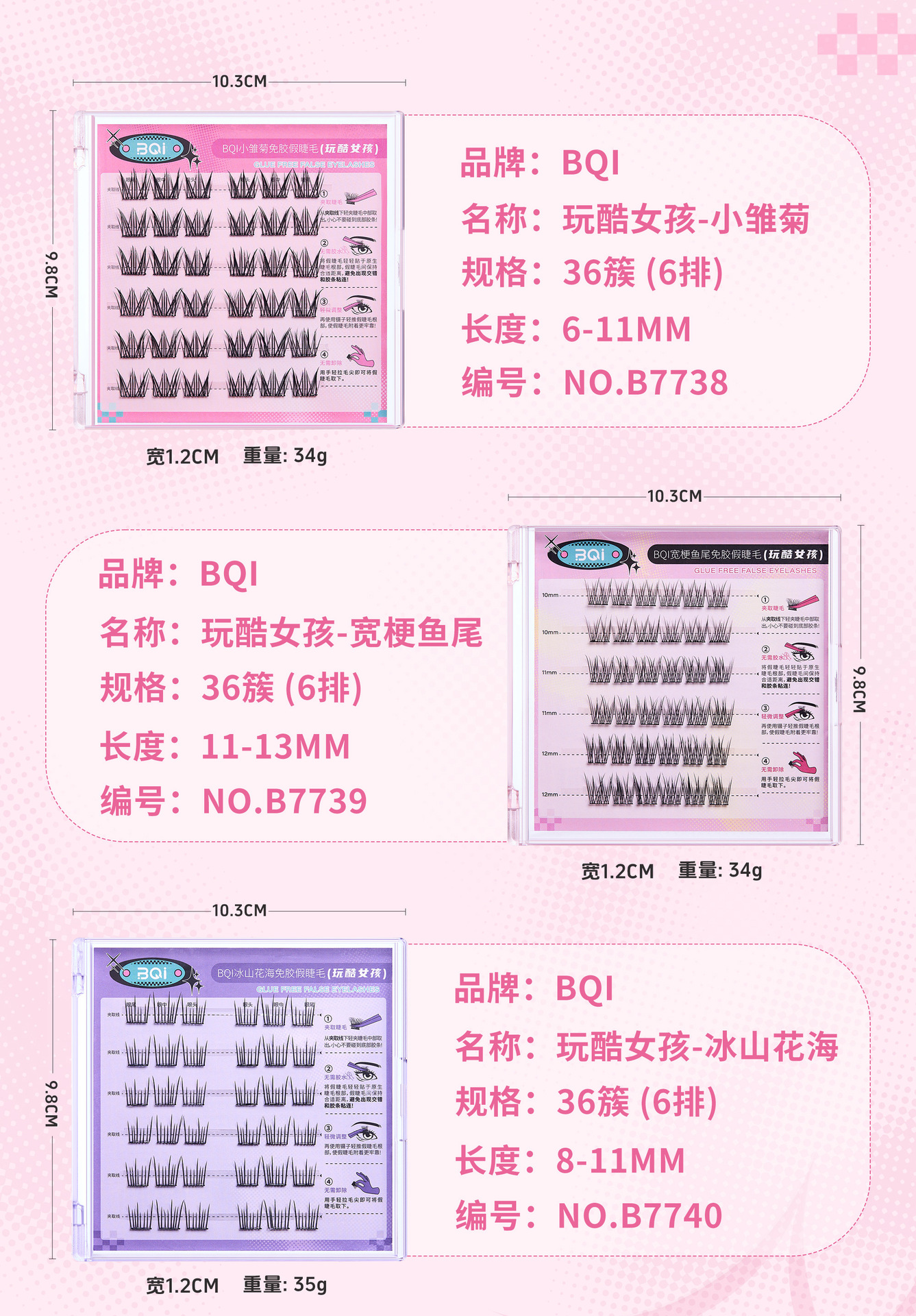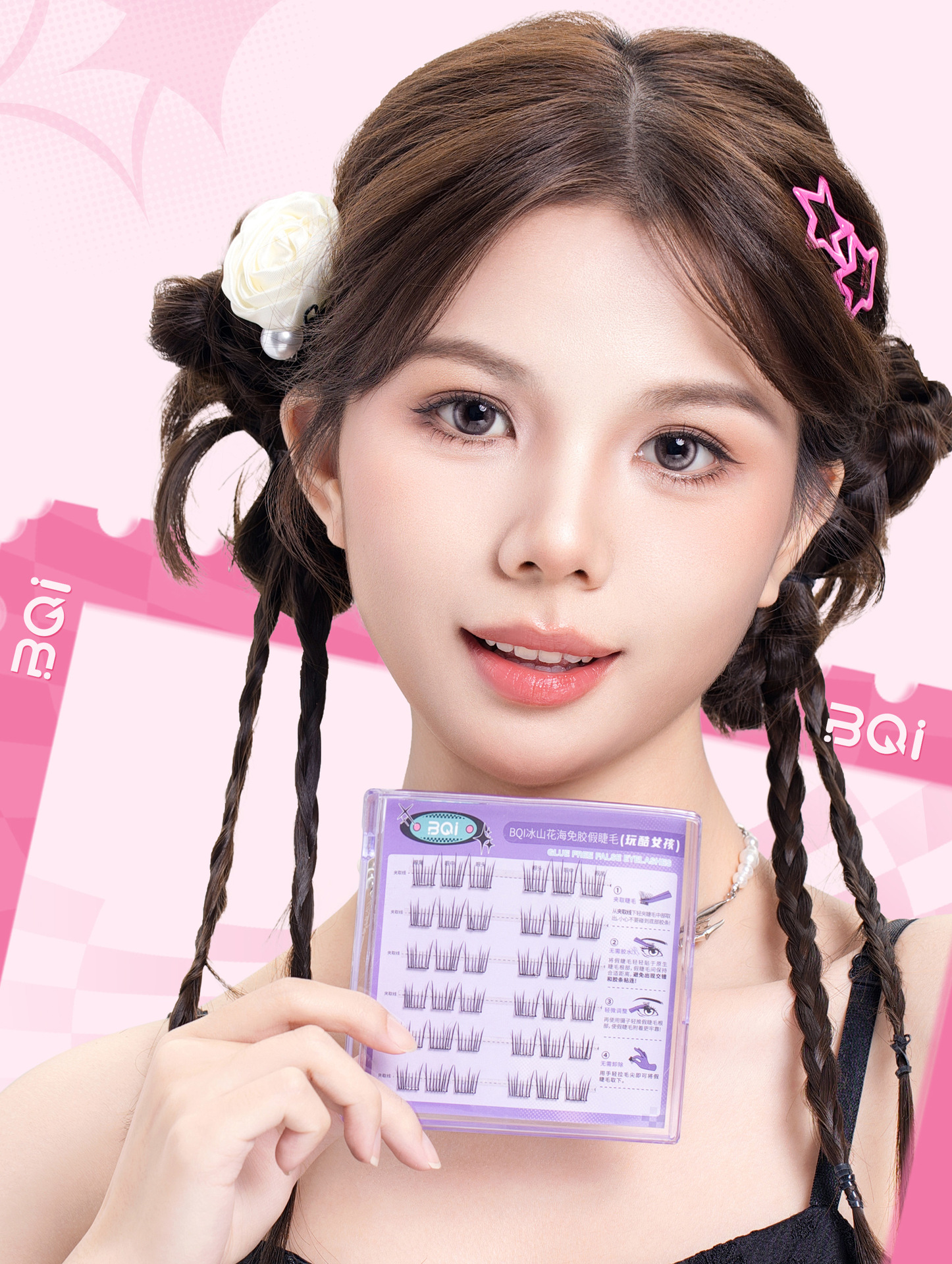 BQI 플레이 멋진 소녀 접착제없는 거짓 속눈썹 자연 스마트 C 스킵 매일 조커 초보자 게으른 만화 속눈썹스토어 가기