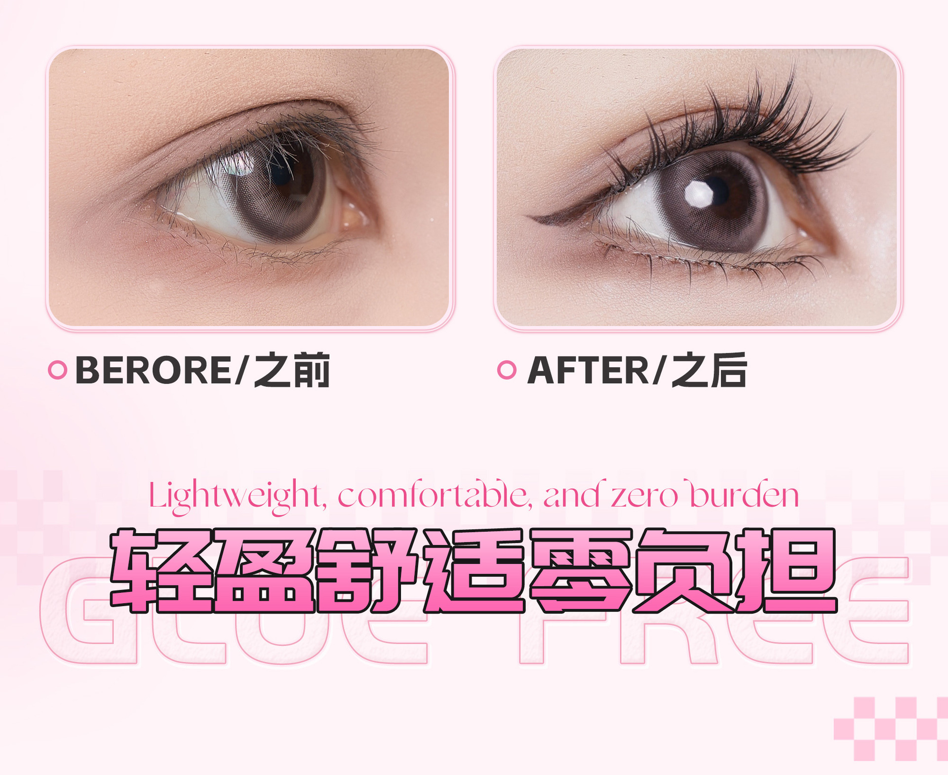 BQI 플레이 멋진 소녀 접착제없는 거짓 속눈썹 자연 스마트 C 스킵 매일 조커 초보자 게으른 만화 속눈썹