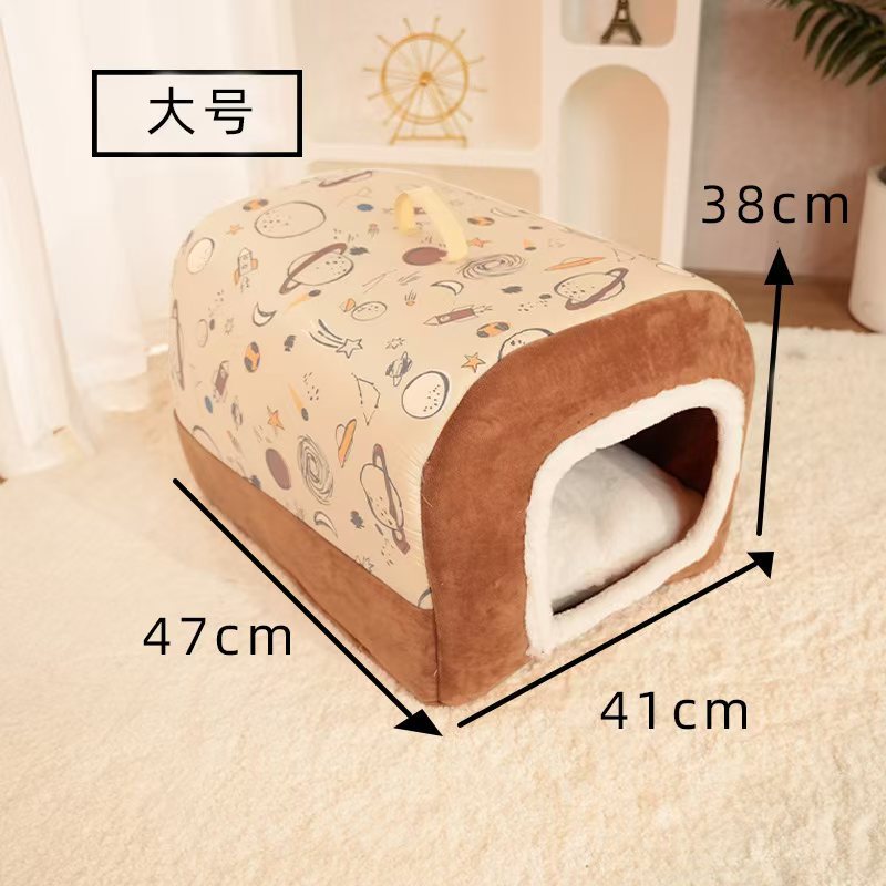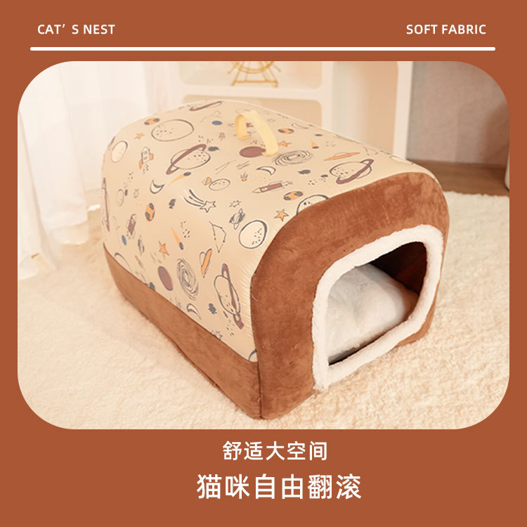 새로운 고양이 집 둥지 겨울 따뜻한 고양이 둥지 폐쇄 보안 이동식 및 세척 가능한 고양이 침대 만화 큰 집 둥지