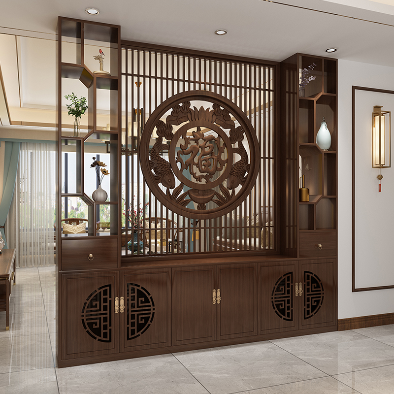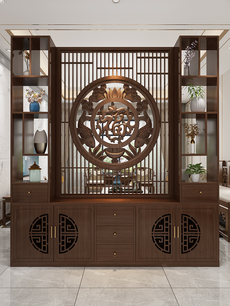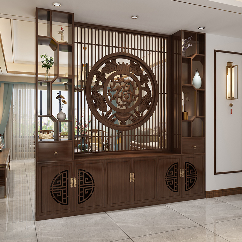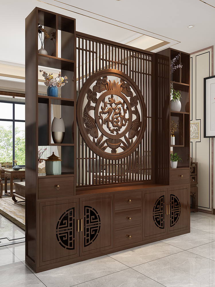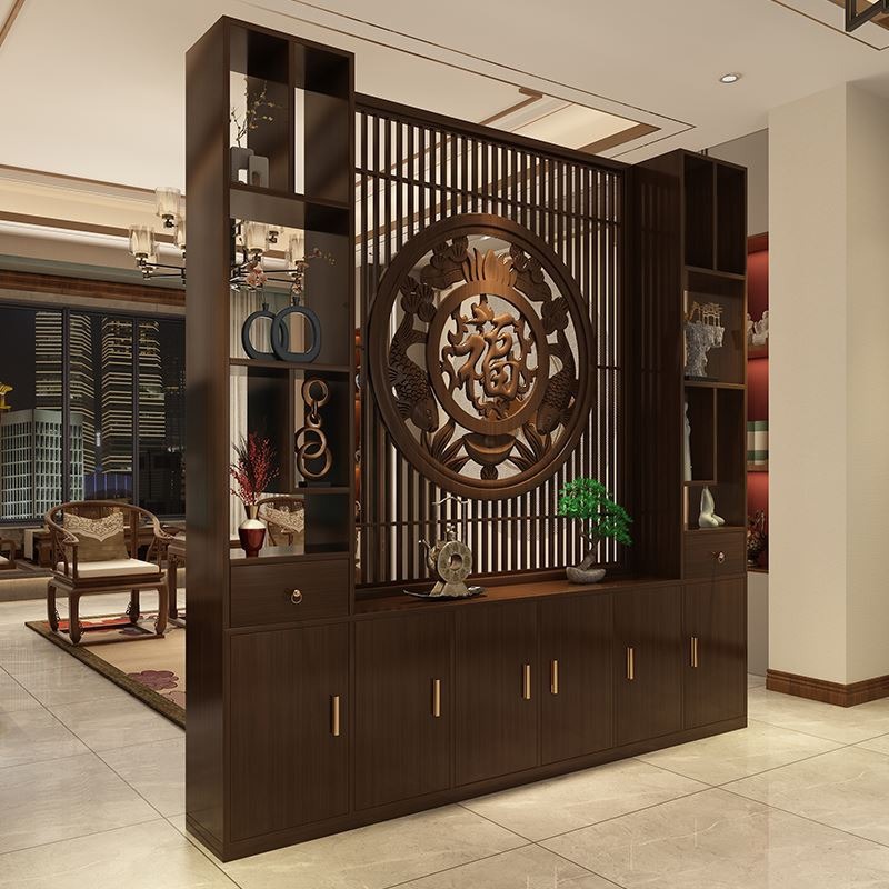 스크린 파티션 거실용 신중국풍 원목 파티션 캐비닛 현관 캐비닛 빌라 입구 와인 캐비닛 엠보싱 스크린