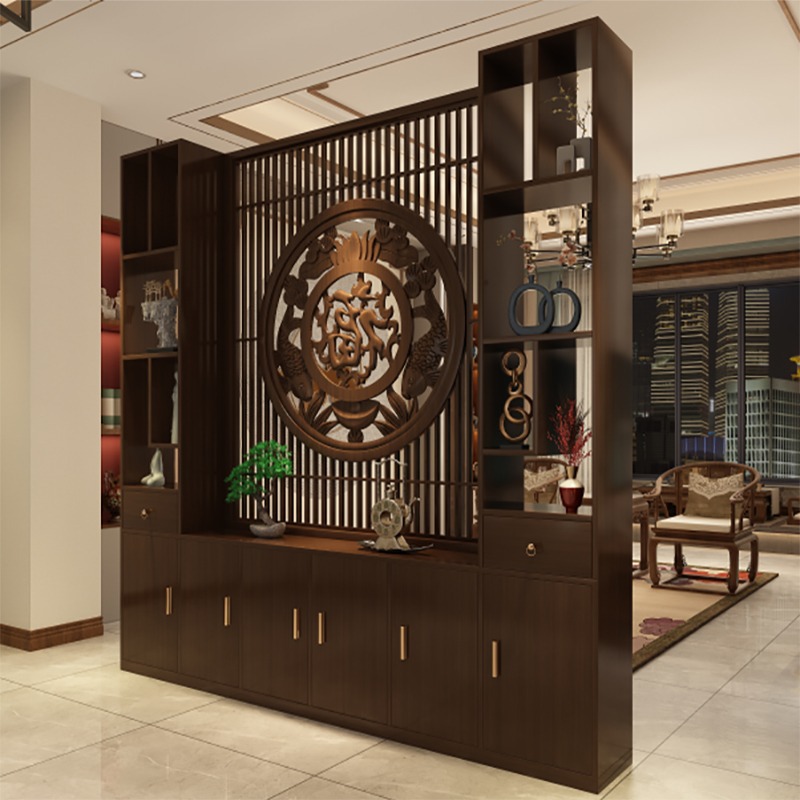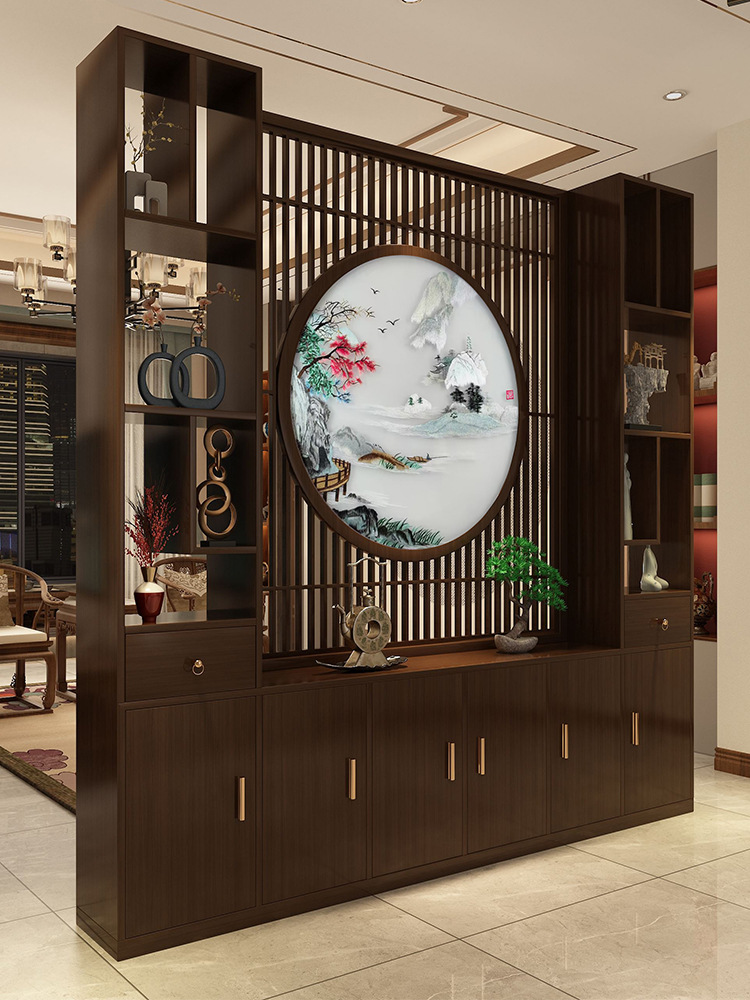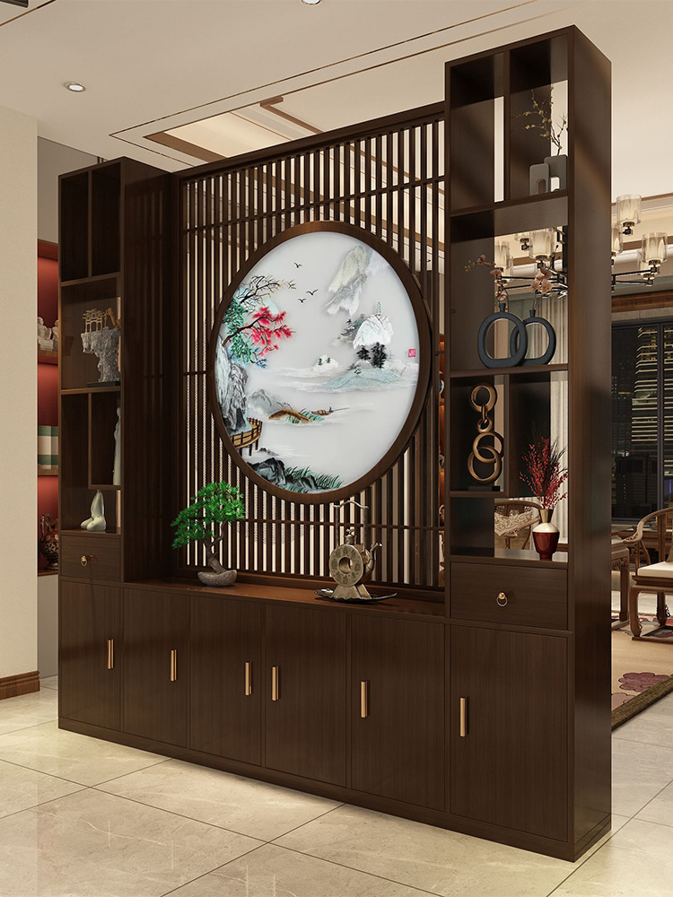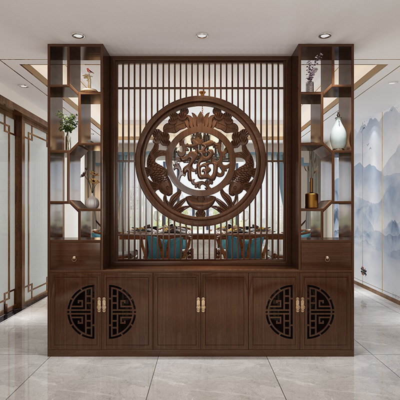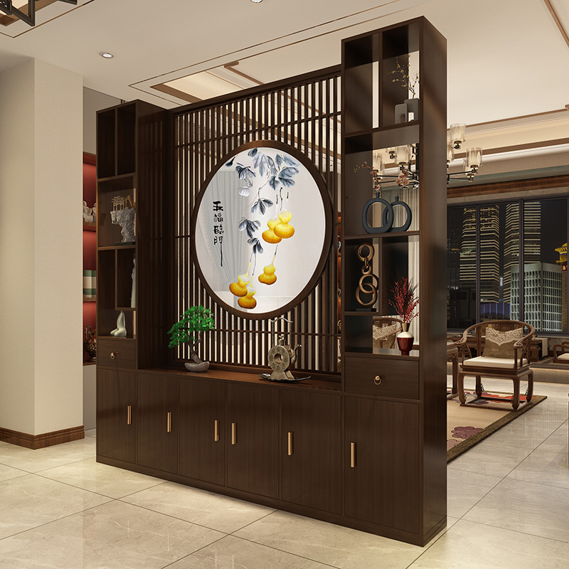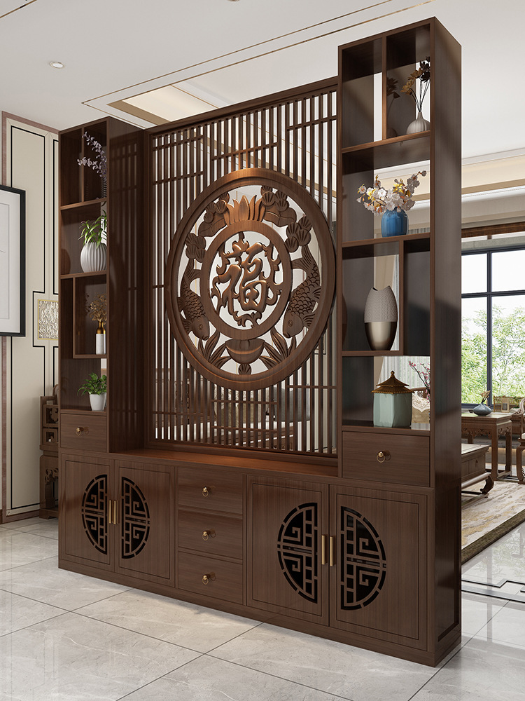 스크린 파티션 거실용 신중국풍 원목 파티션 캐비닛 현관 캐비닛 빌라 입구 와인 캐비닛 엠보싱 스크린