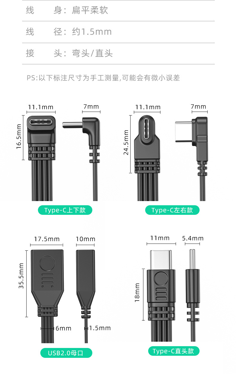• 왼쪽 및 오른쪽 곡선형 Typec - USB 암 직선 헤드(베어 보드는 DIY 수정에 적합)