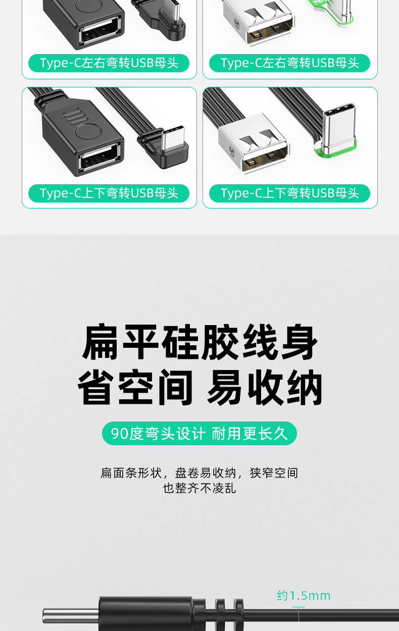Typec to usb2.0 팔꿈치 실리콘 케이블 태블릿 컴퓨터 휴대 전화 U 디스크 OTG 데이터 라인 자동차 상호 연결