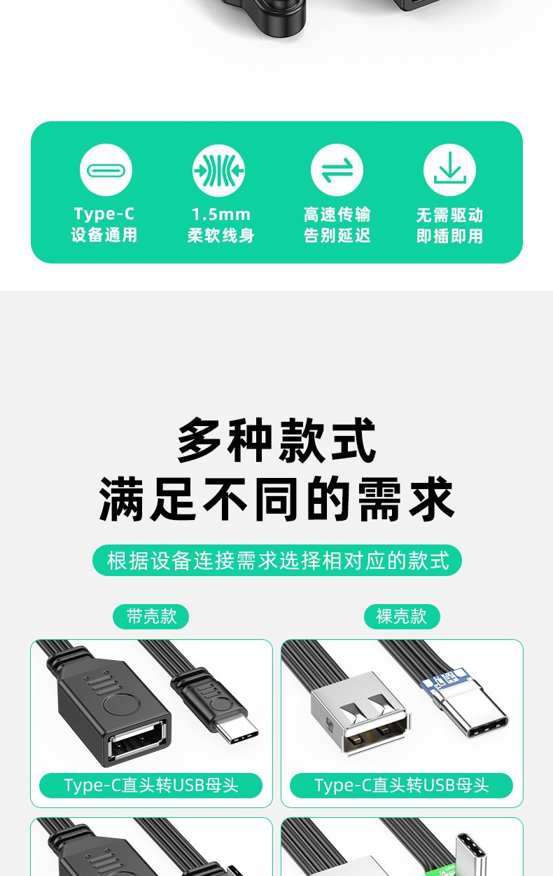 • 위아래로 구부러진 typec - USB 암 직선 헤드(베어 보드는 DIY 개조에 적합)