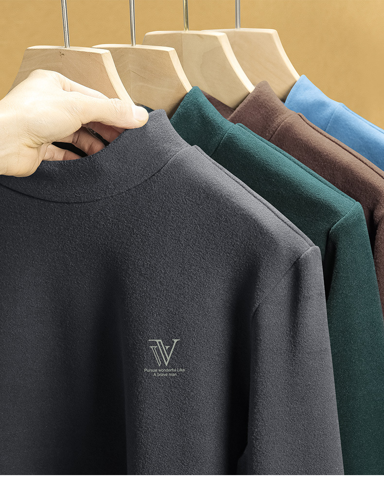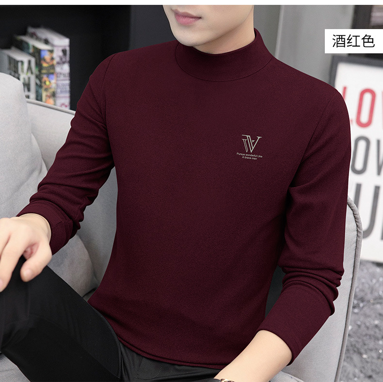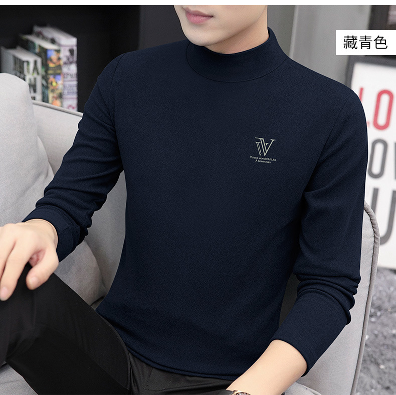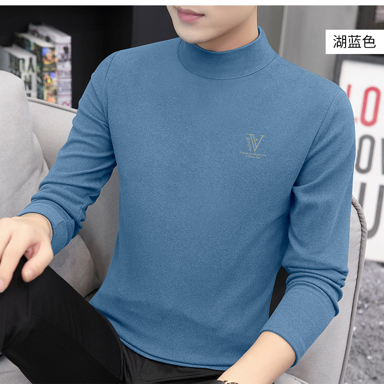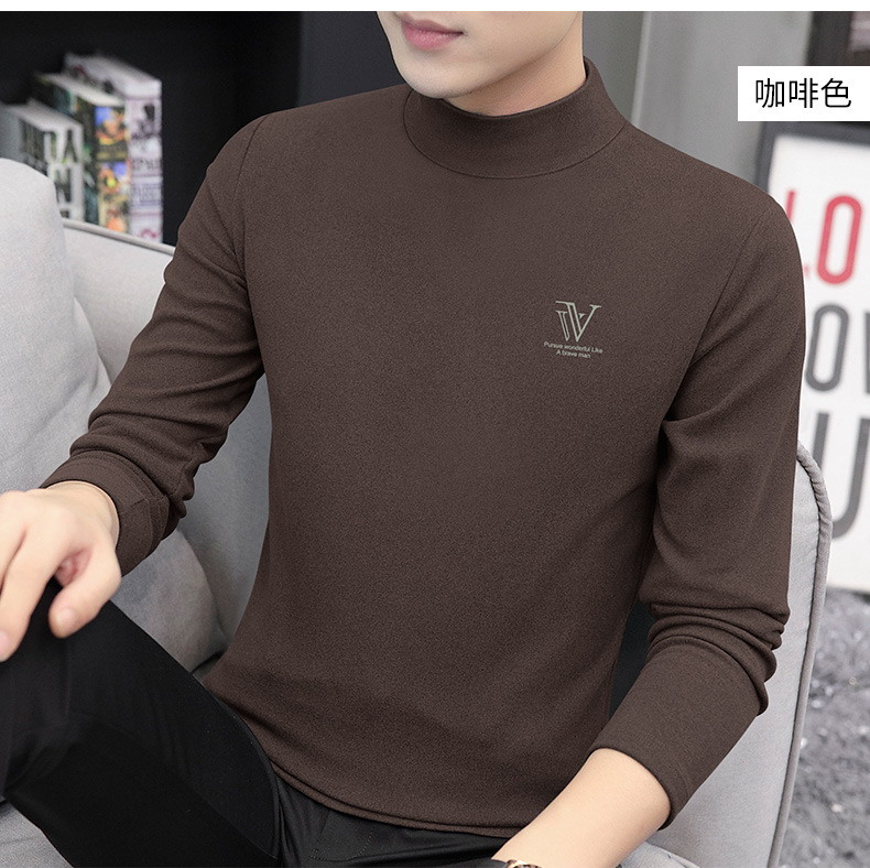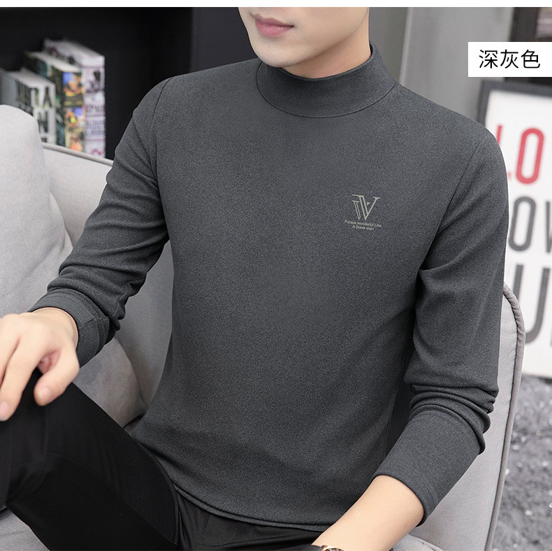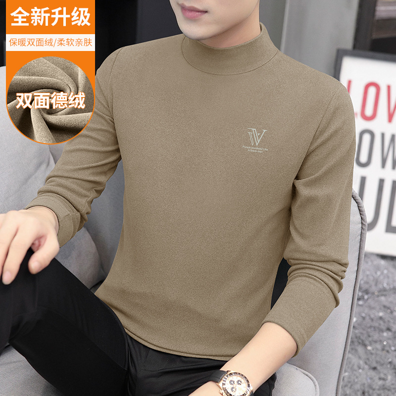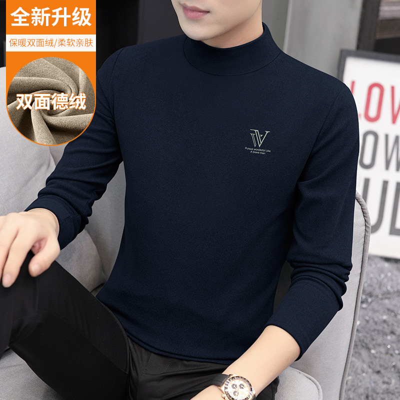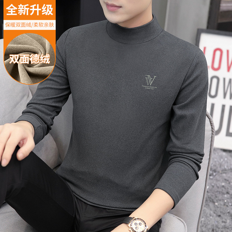 청년용 데론 하프 터틀넥 가을 겨울 남성 긴팔 티셔츠, 기모 처리된 두꺼운 보온 이너웨어, 남성용 중간 길이 칼라 이너웨어스토어 가기