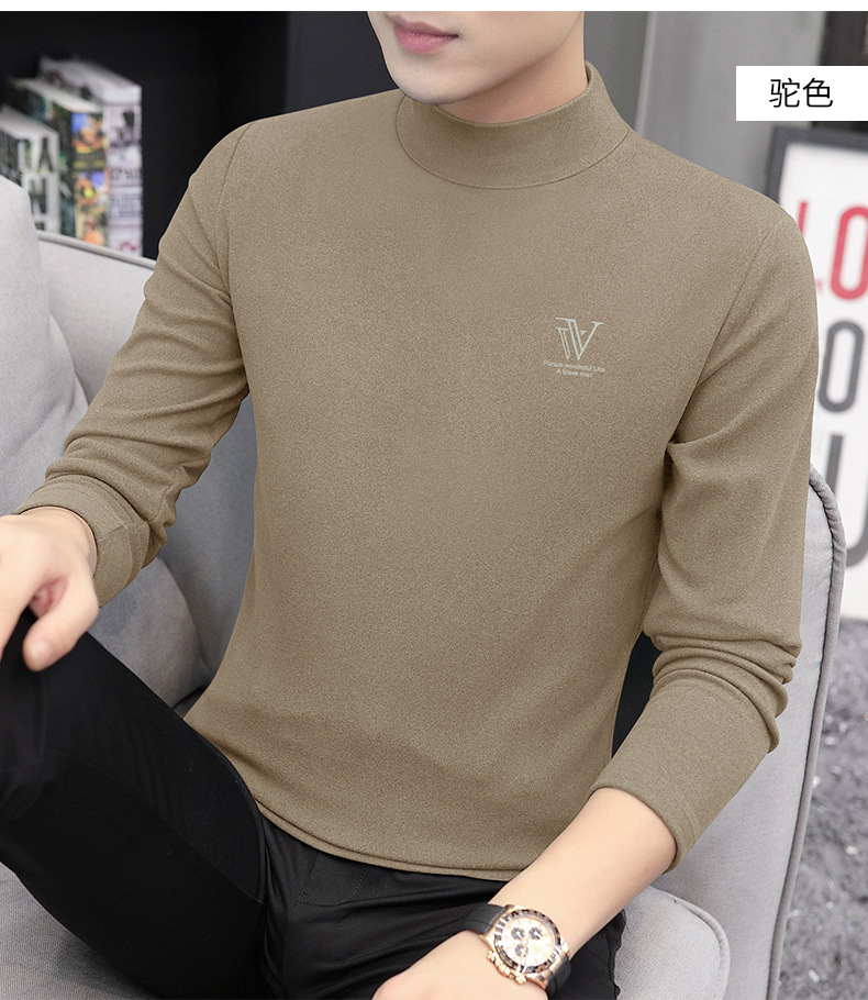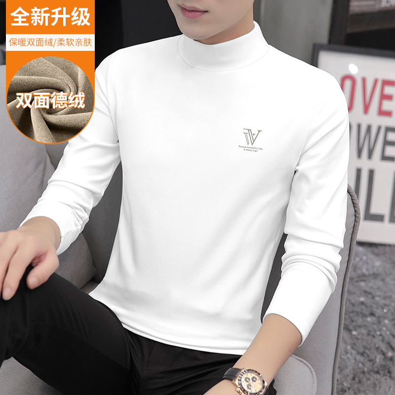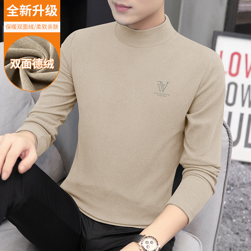 청년용 데론 하프 터틀넥 가을 겨울 남성 긴팔 티셔츠, 기모 처리된 두꺼운 보온 이너웨어, 남성용 중간 길이 칼라 이너웨어