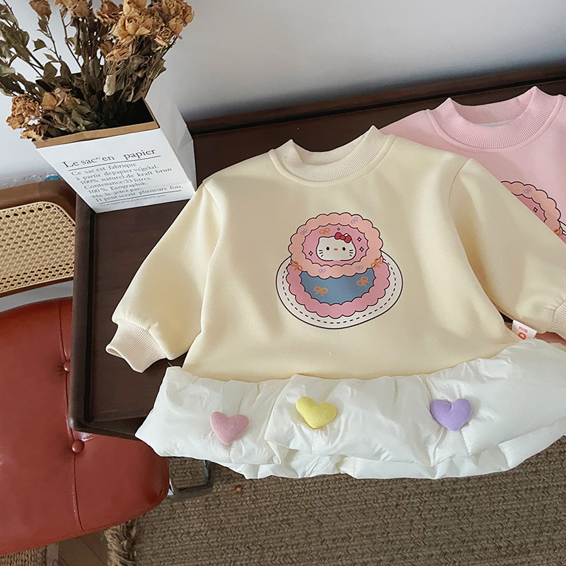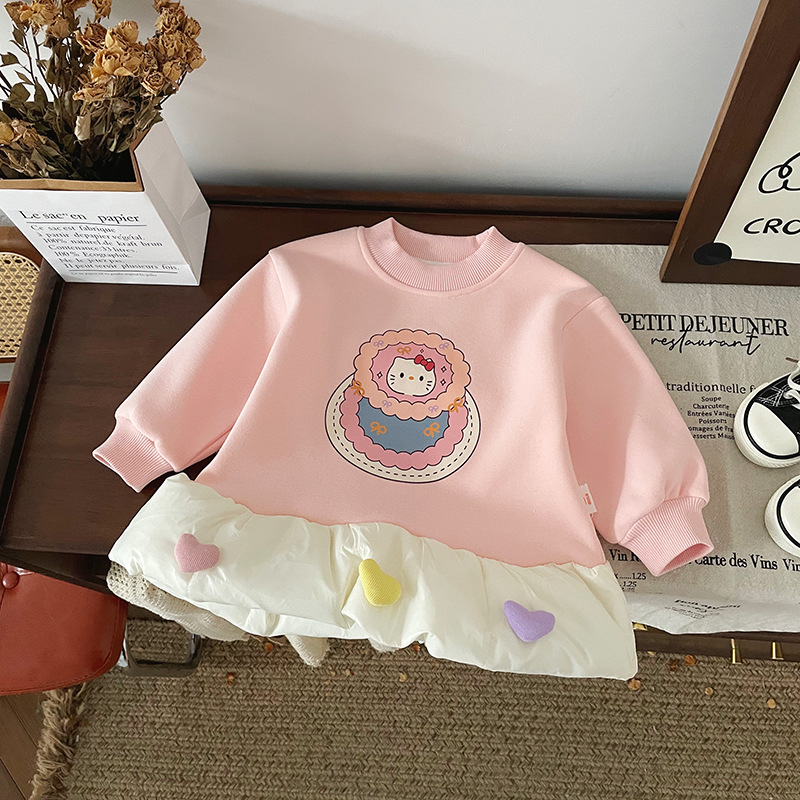 [재고] 어린이 기모 원피스 2024 가을/겨울 새 만화 기모 긴 소매 원피스 QY241202
