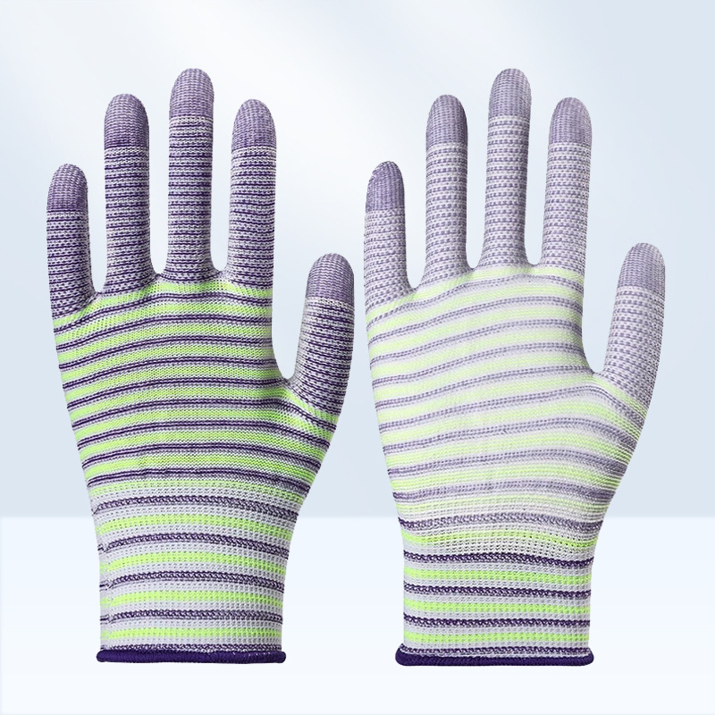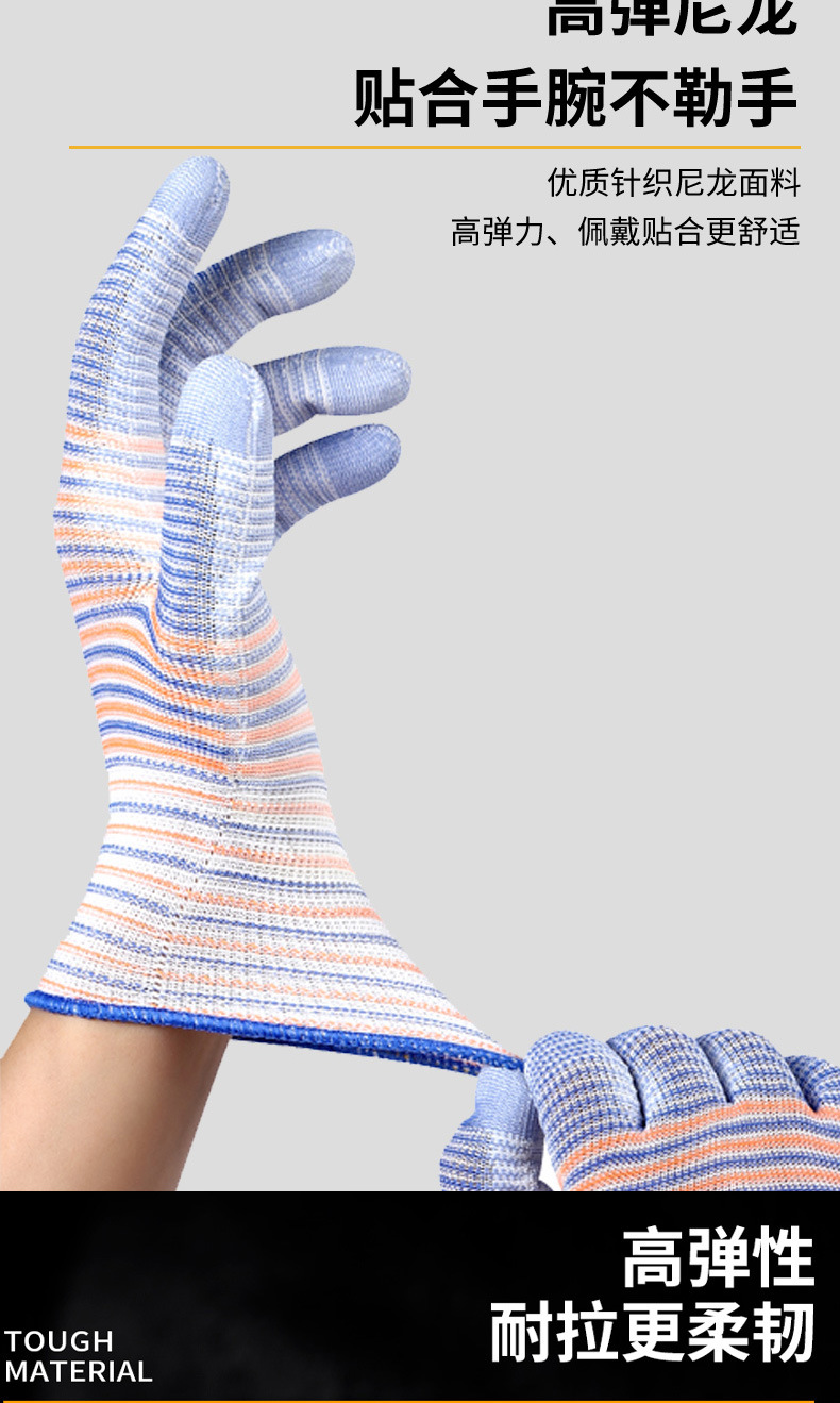 얼룩말 패턴 PU 팜 코팅 장갑 나일론 디퍼 미끄럼 방지 내마모성 얇은 작동 고무 노동 보호 남성과 여성