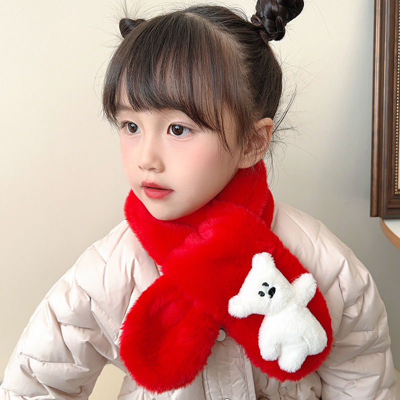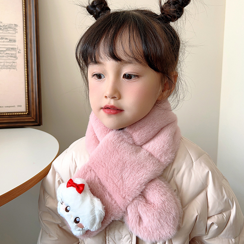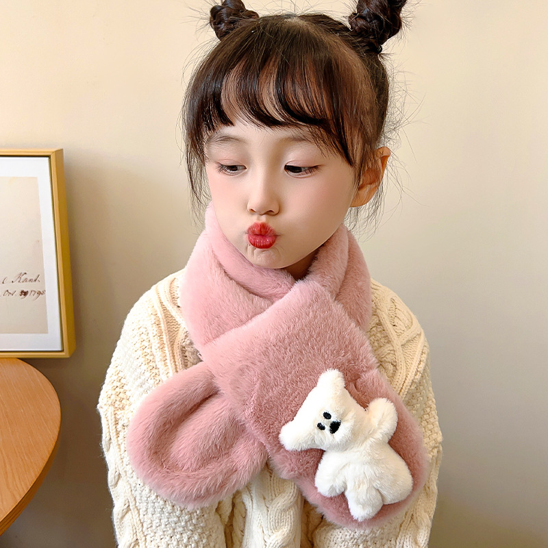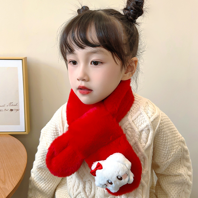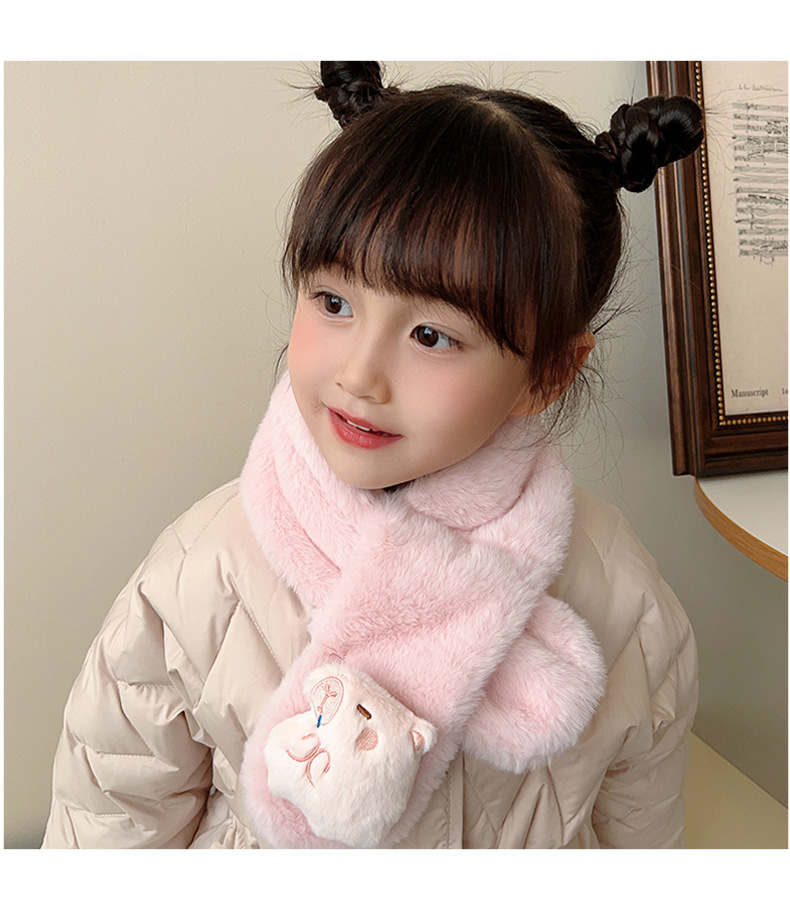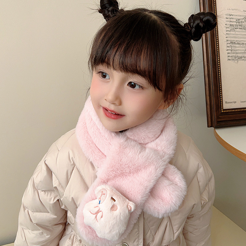 어린이 스카프 겨울 따뜻한 봉제 두꺼운 크로스 귀여운 만화 아기 바람 방지 목 세트 소년과 소녀