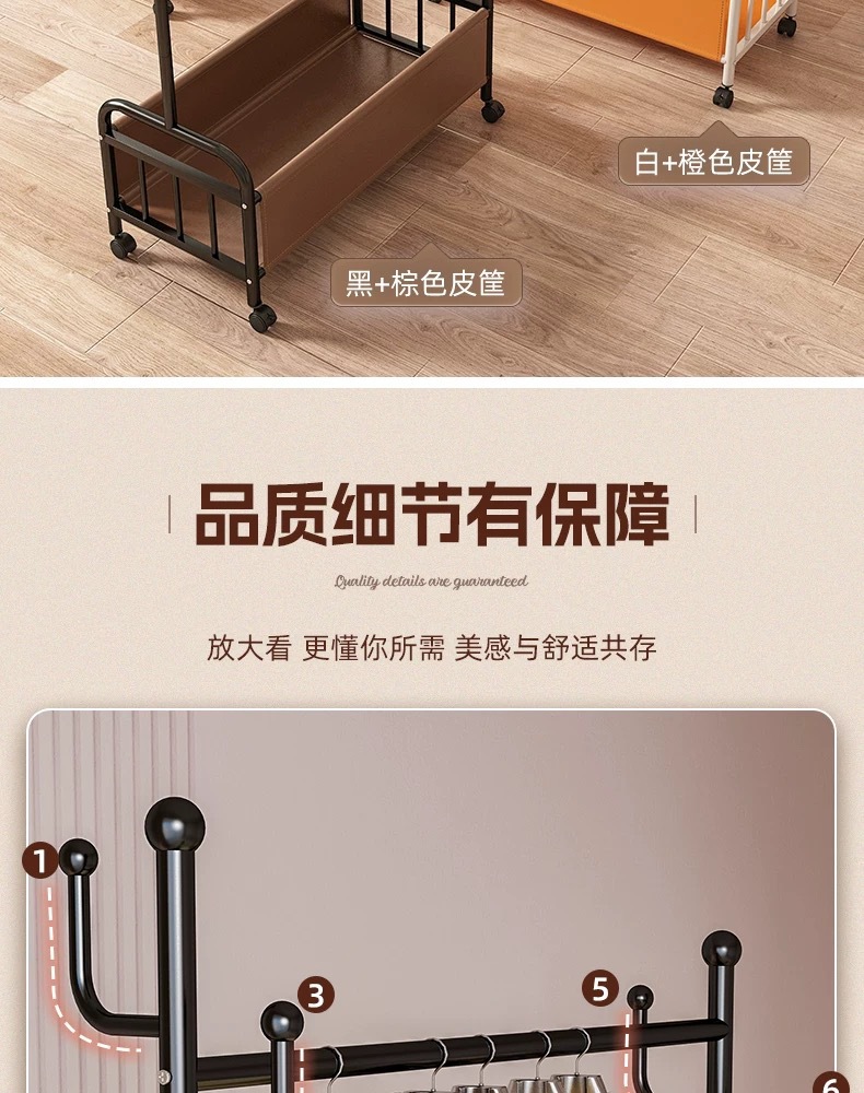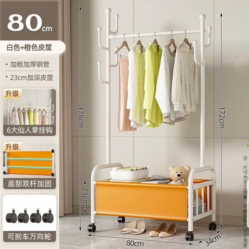 • [화이트 오렌지 80cm] 두꺼운 파이프 직경 + 코트 후크 6개 + 범용 휠 + 하단 이중 빔 보강