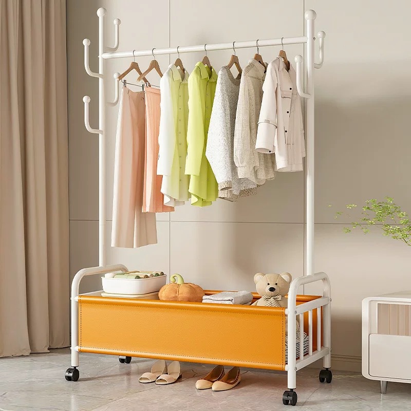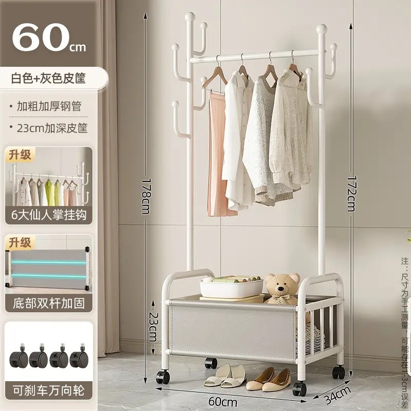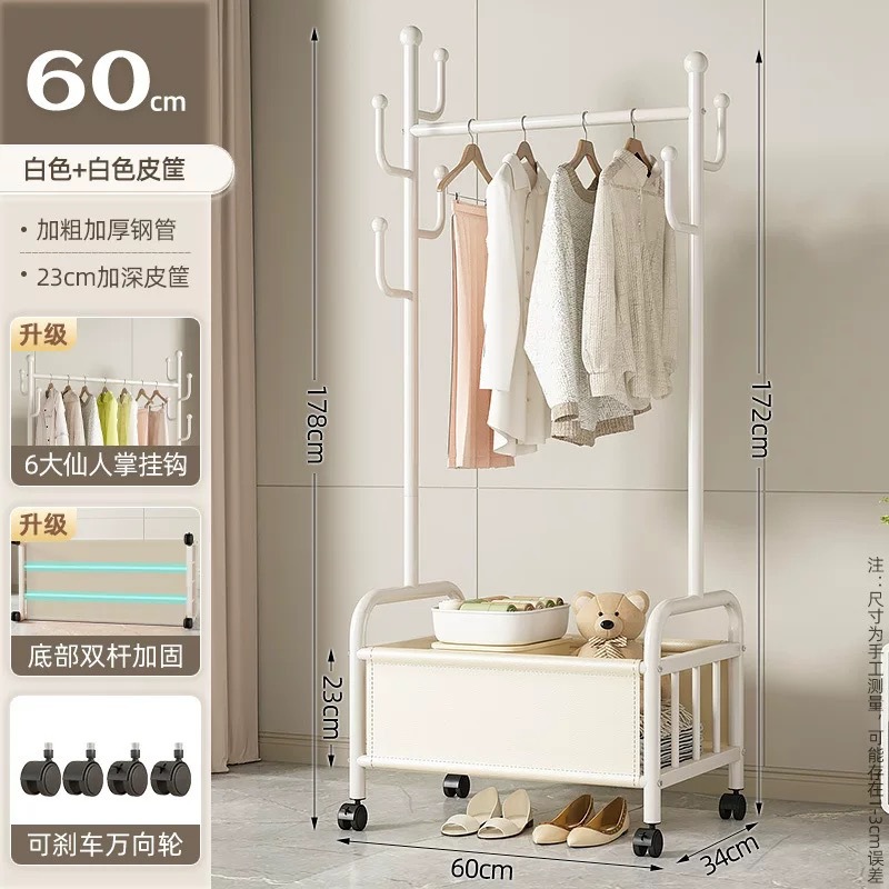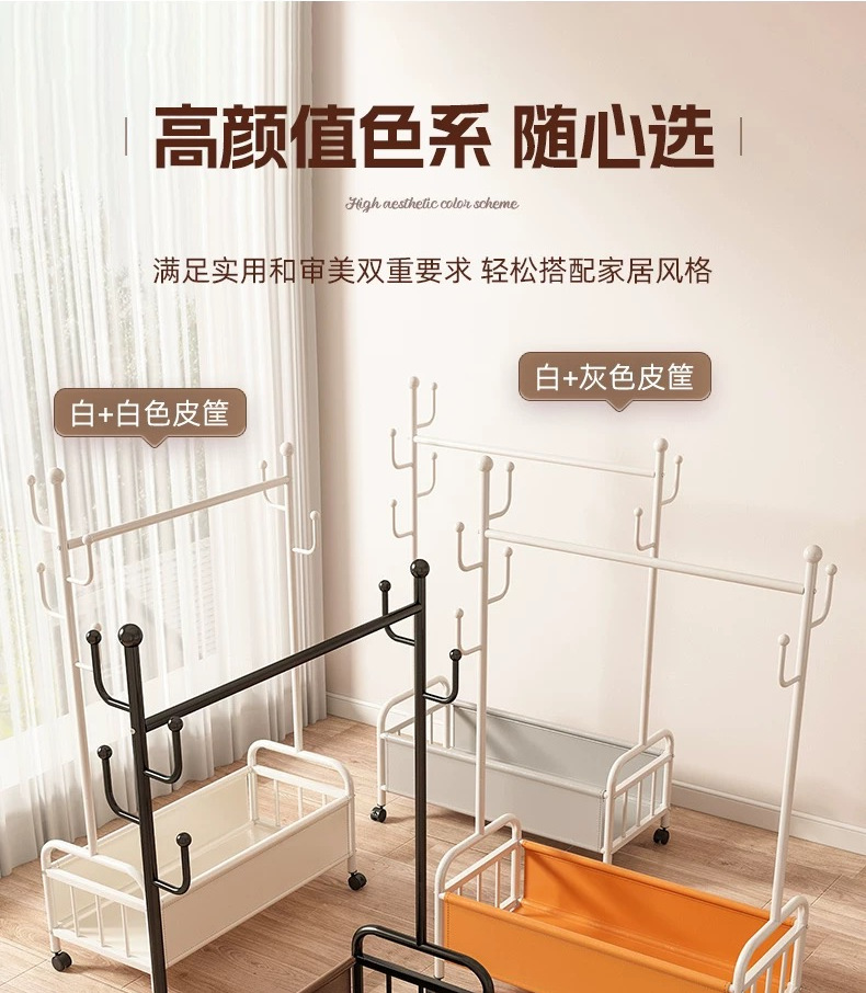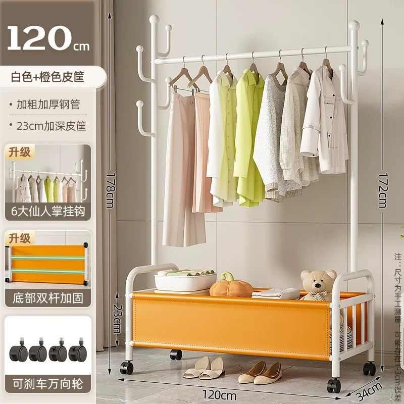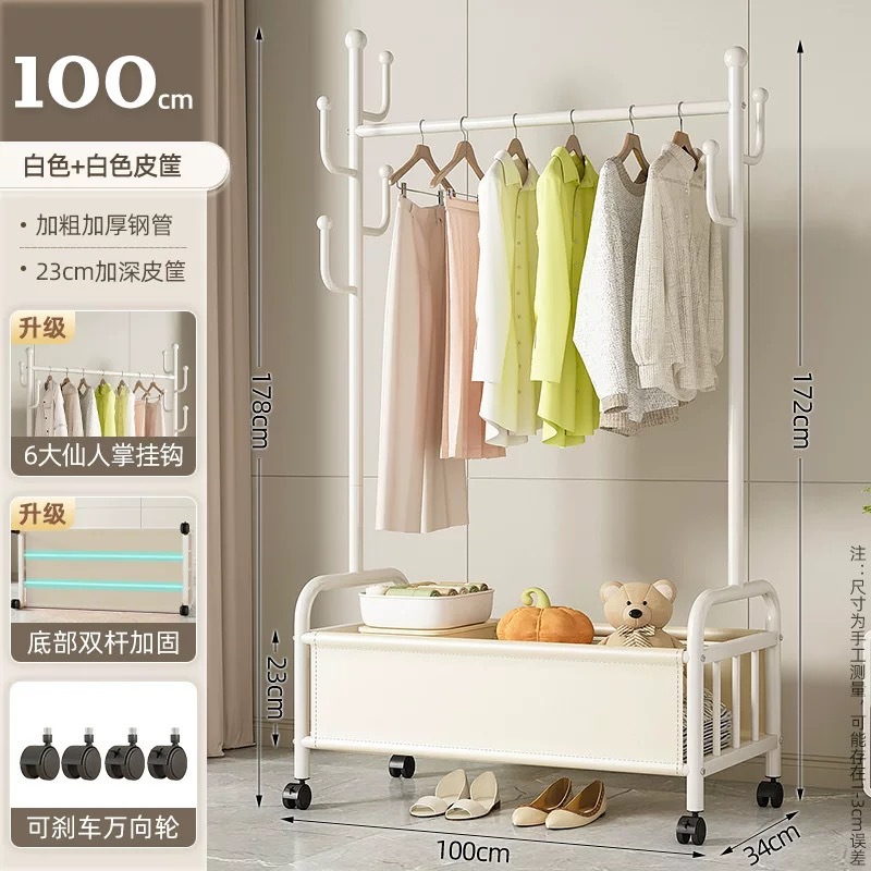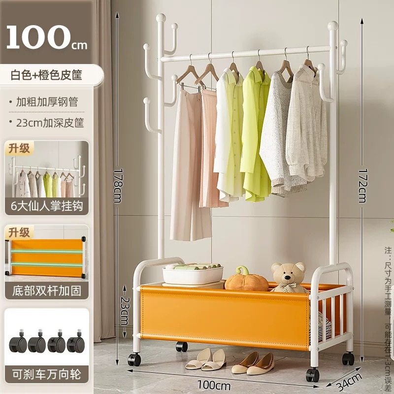 바퀴가 달린 바구니가 있는 가정용 바닥걸이 옷걸이, 이동식 침실 옷걸이, 실내 수납 옷걸이, 옷걸이, 무료 배송스토어 가기