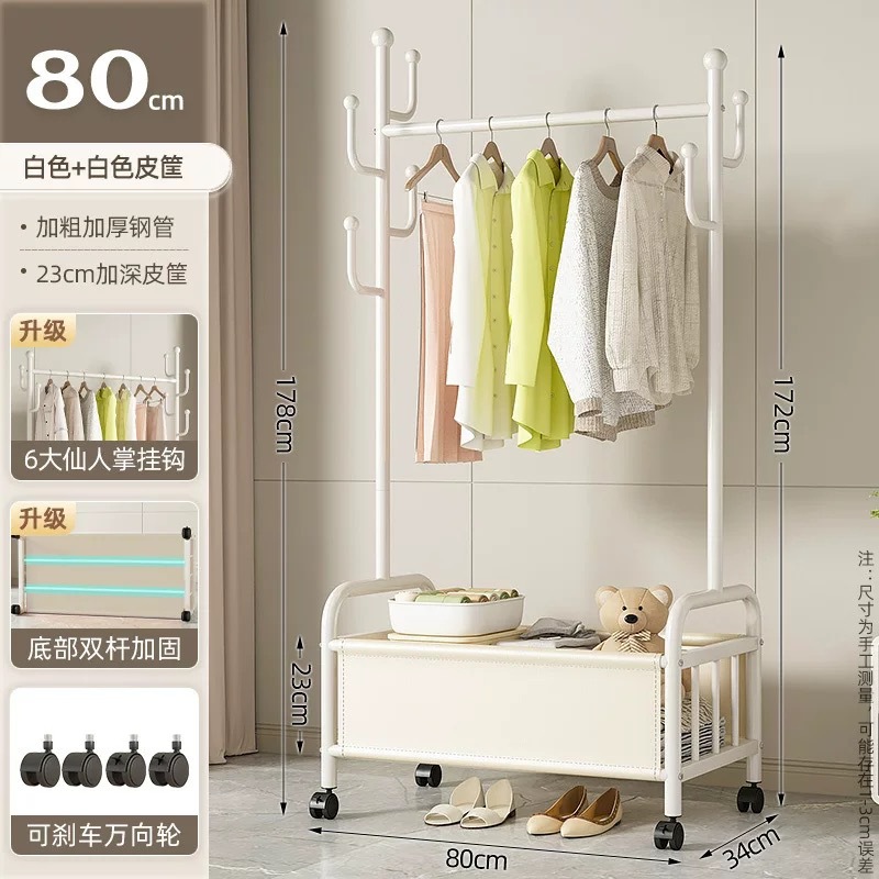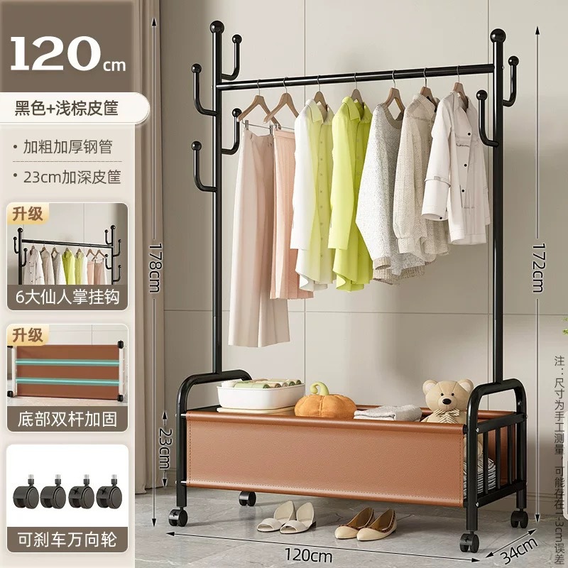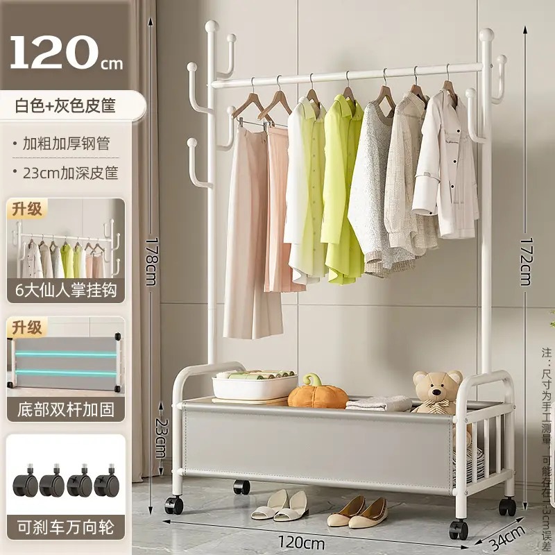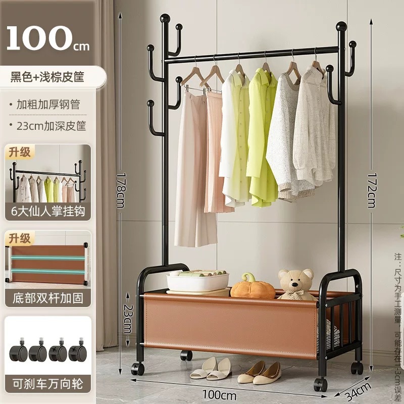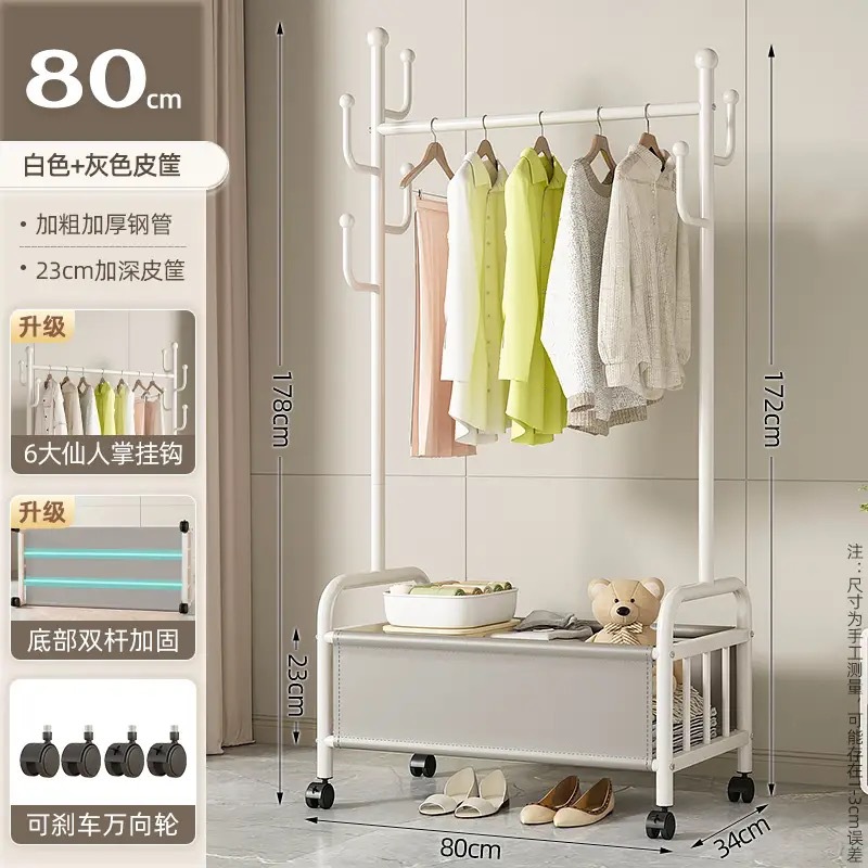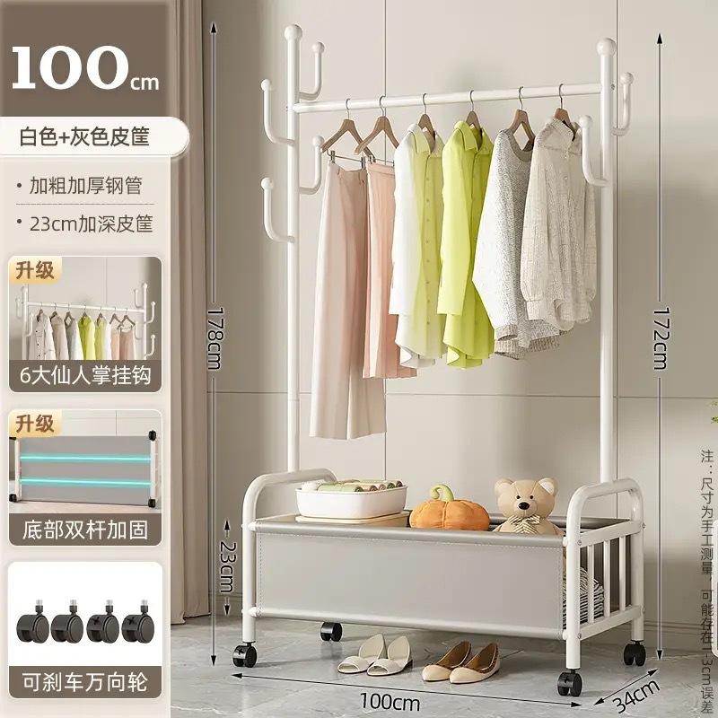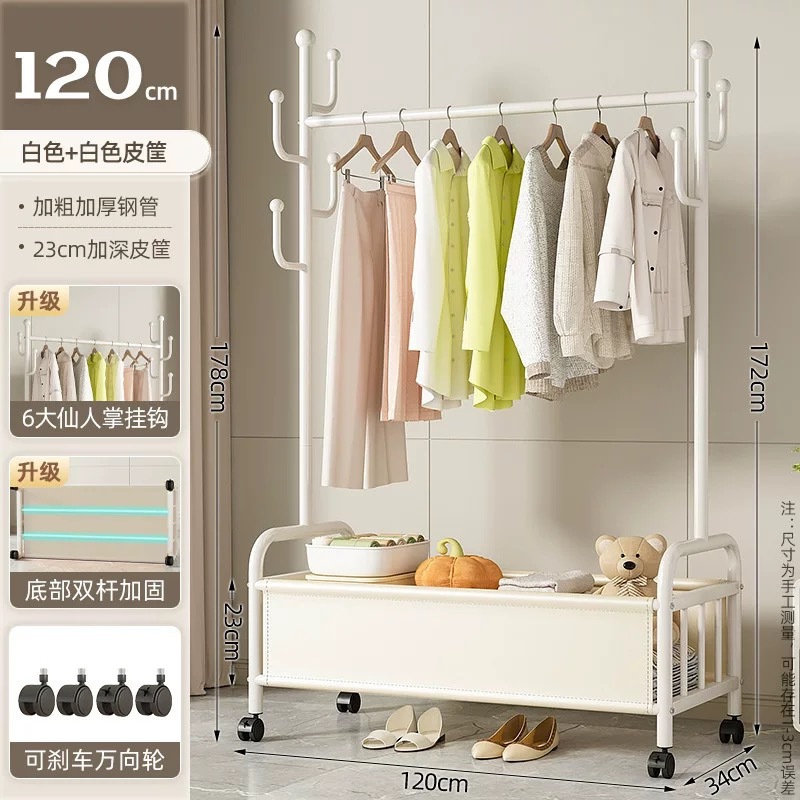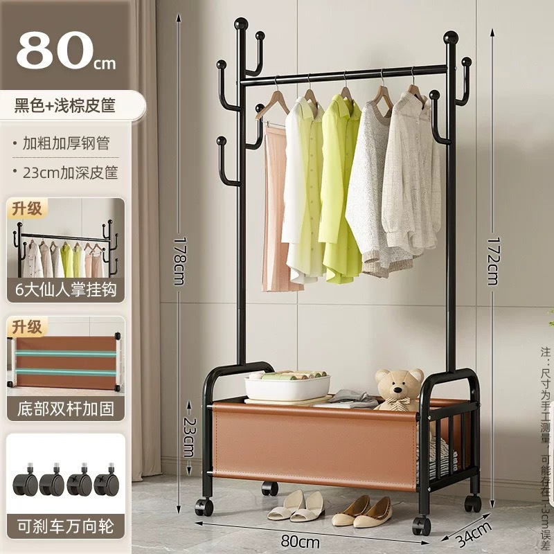 바퀴가 달린 바구니가 있는 가정용 바닥걸이 옷걸이, 이동식 침실 옷걸이, 실내 수납 옷걸이, 옷걸이, 무료 배송스토어 가기
