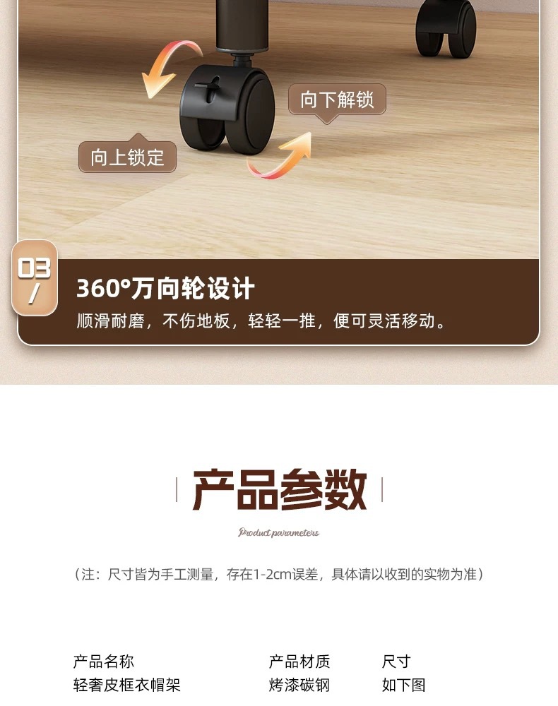 • [화이트 오렌지 60cm] 두꺼운 파이프 직경 + 코트 후크 6개 + 범용 휠 + 하단 이중 빔 보강