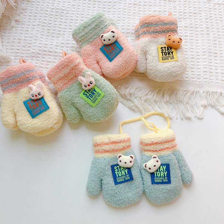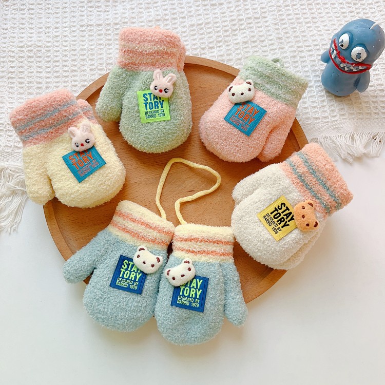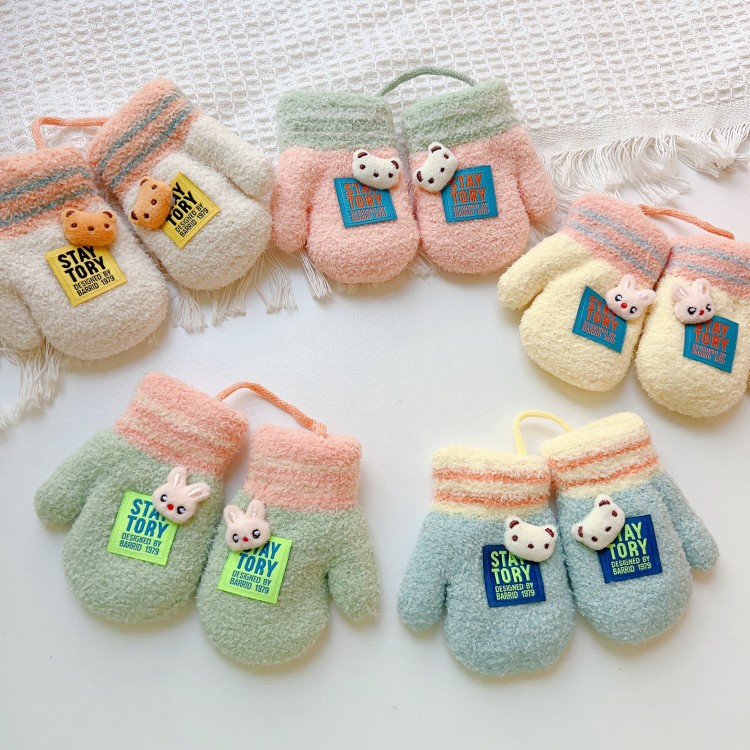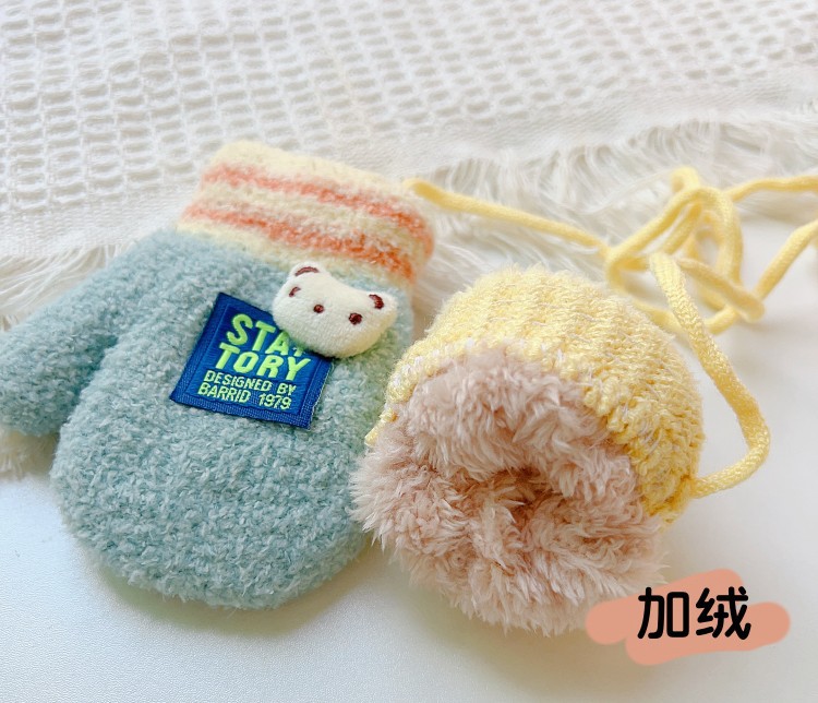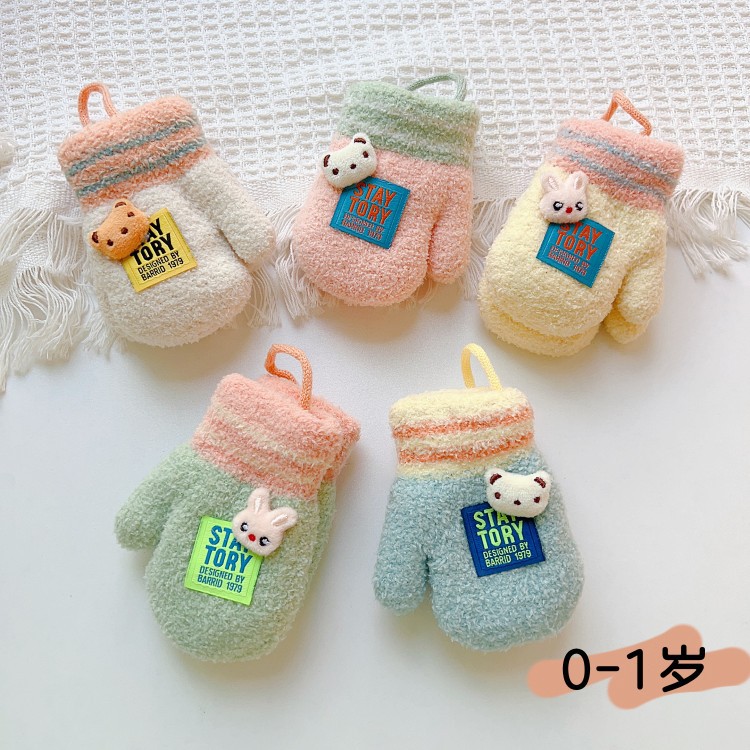 소년과 소녀를위한 겨울 장갑 0-1 세 작은 달 오래된 겨울 반년 아기 기모 두꺼운 손가락 1 세 어린이스토어 가기