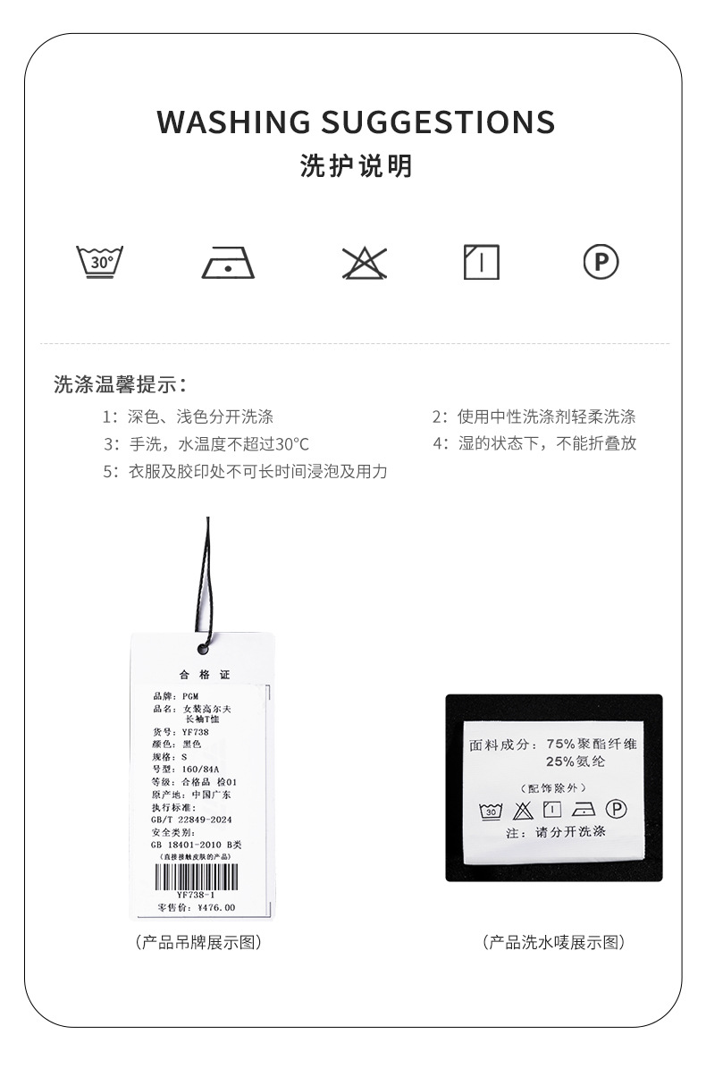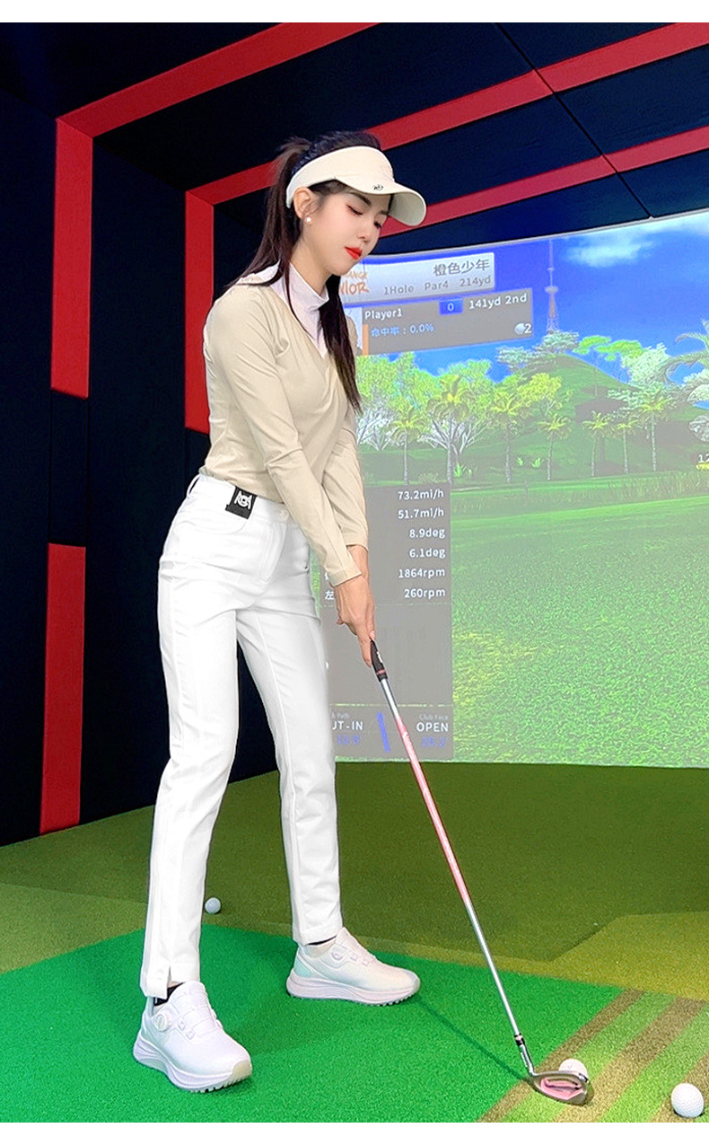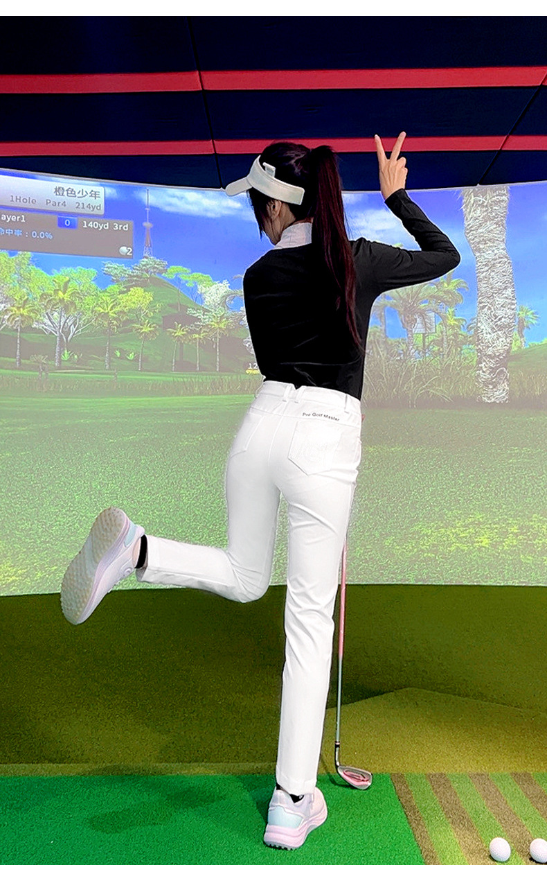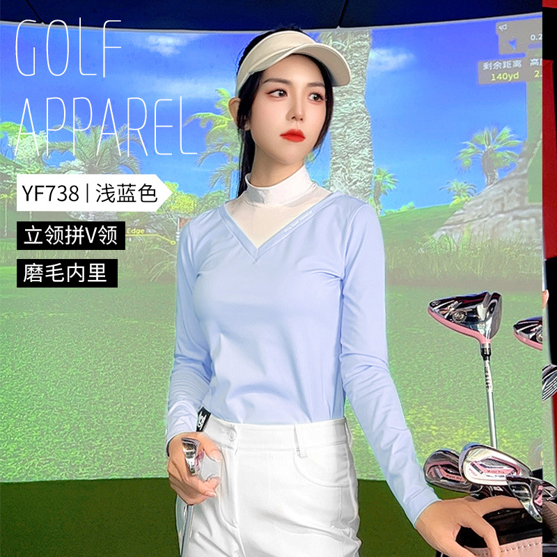 PGM 골프 의류 여성용 긴팔 티셔츠 가짜 투피스 수직 칼라 V넥 탑 자른 바지 바지 세트