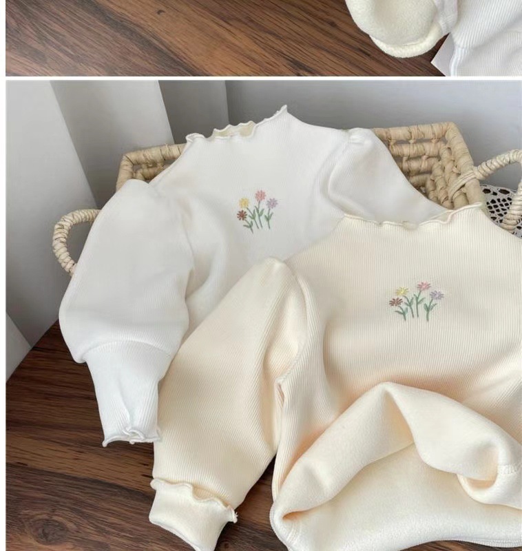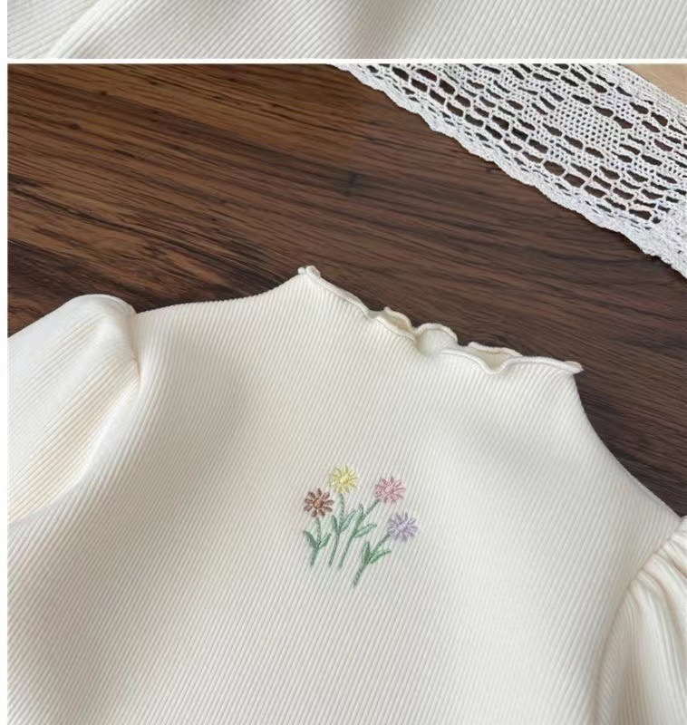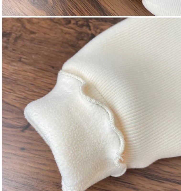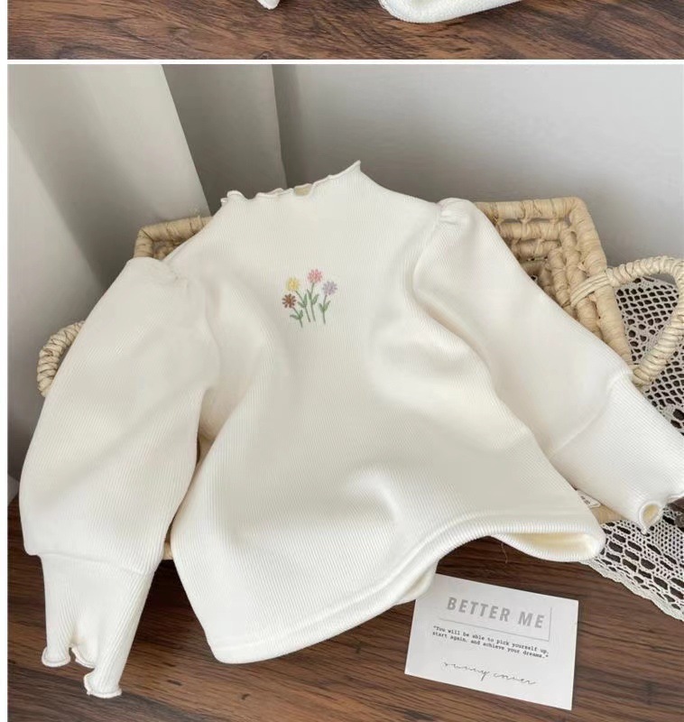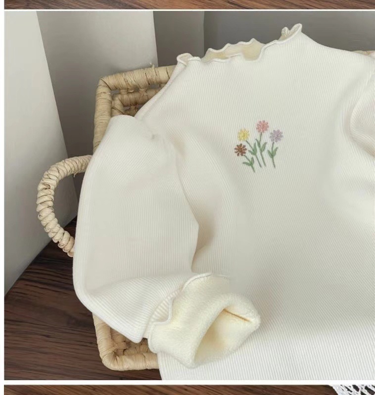 2024 새로운 아기 소녀의 하프 하이 칼라 원피스 벨벳베이스 셔츠 겨울 소녀의 기모 두꺼운 퍼프 슬리브 스위트 탑