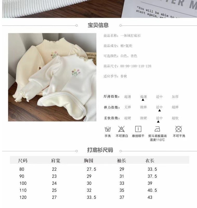 2024 새로운 아기 소녀의 하프 하이 칼라 원피스 벨벳베이스 셔츠 겨울 소녀의 기모 두꺼운 퍼프 슬리브 스위트 탑스토어 가기