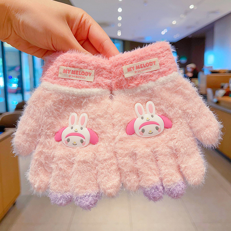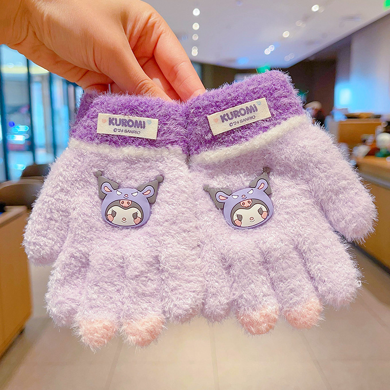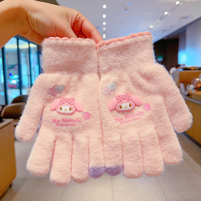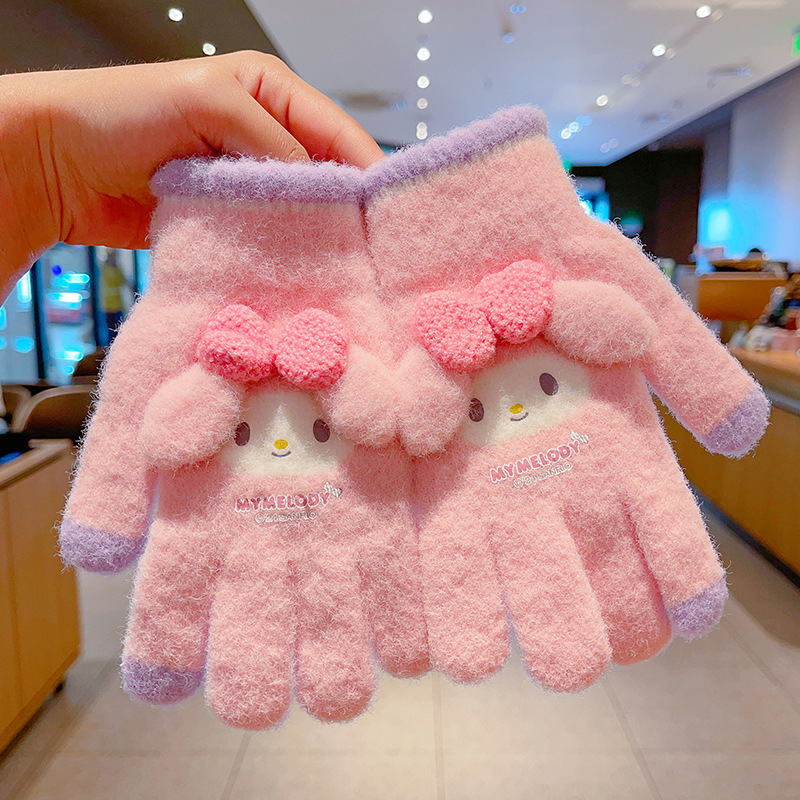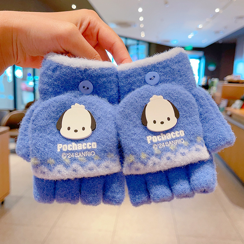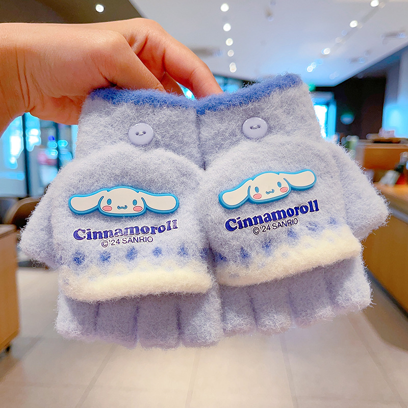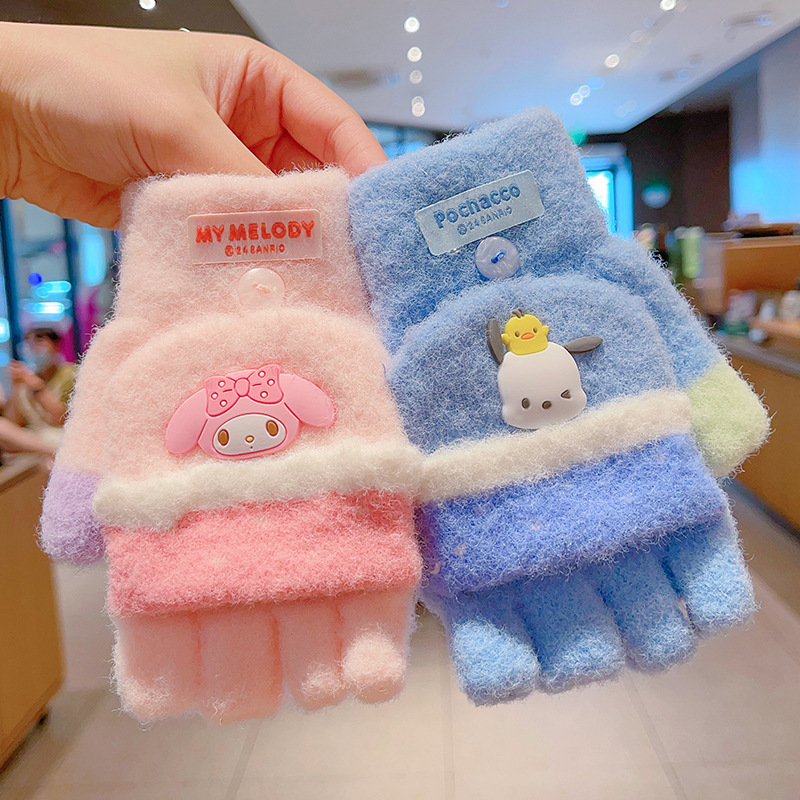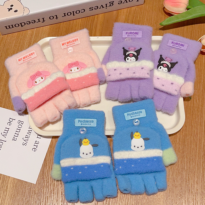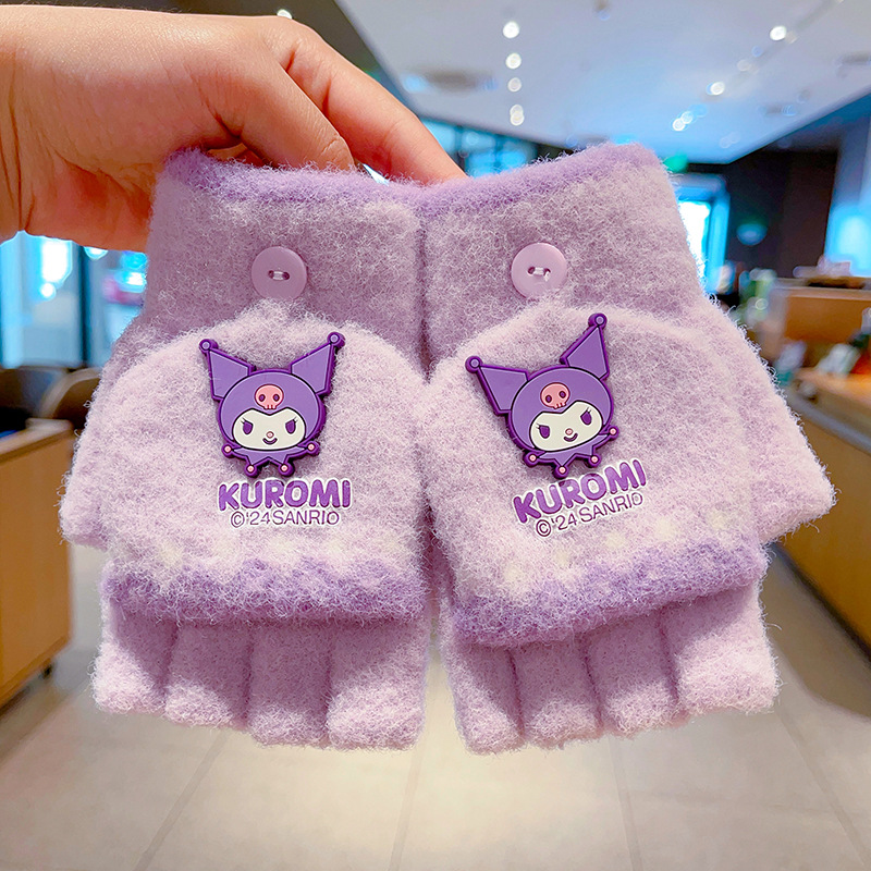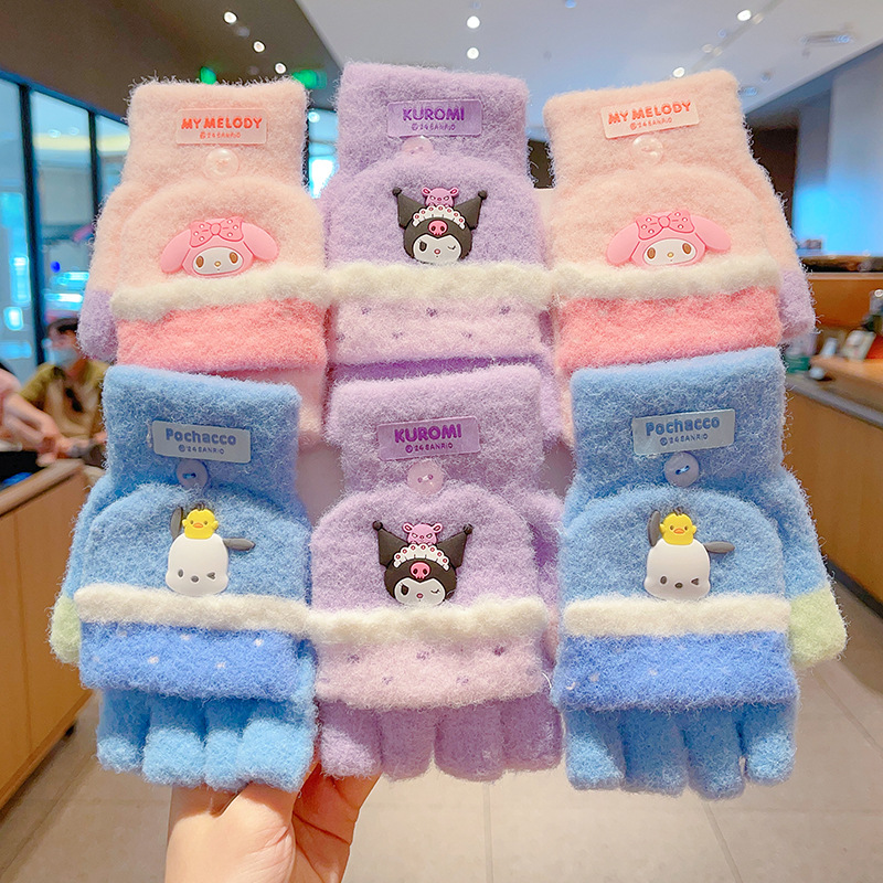 어린이 장갑 가을과 겨울 산리오 쿨로 미 소년과 소녀 초등학생 울 하프 핑거 플립 커버 베어 핑거 글쓰기스토어 가기