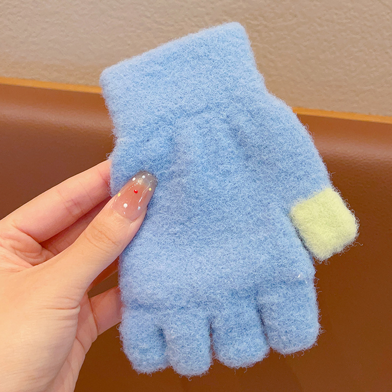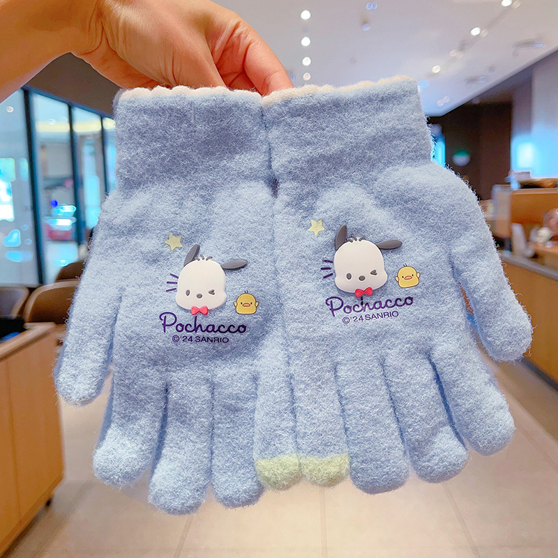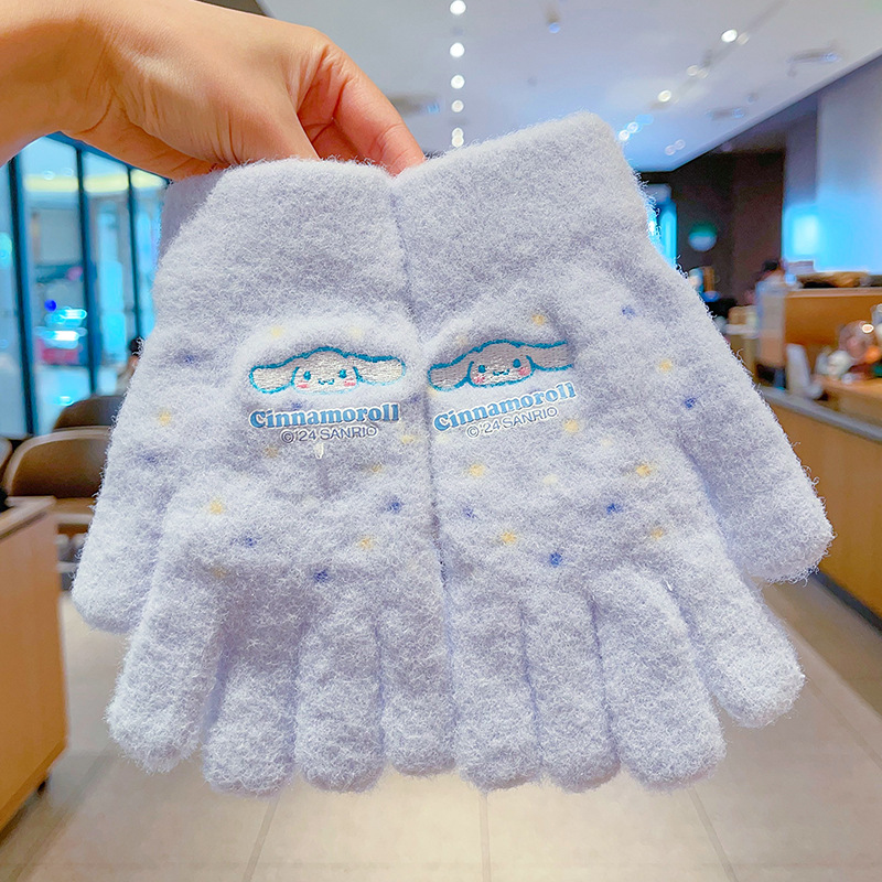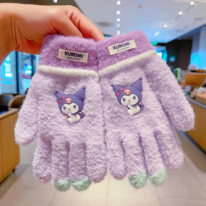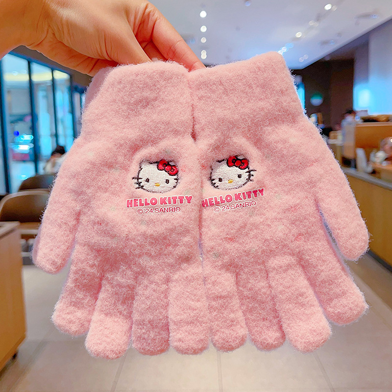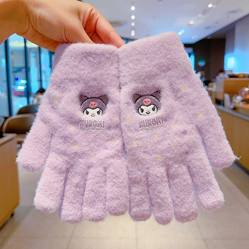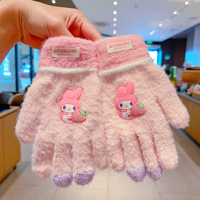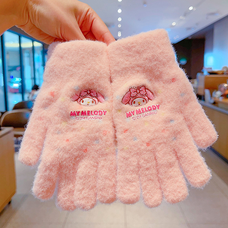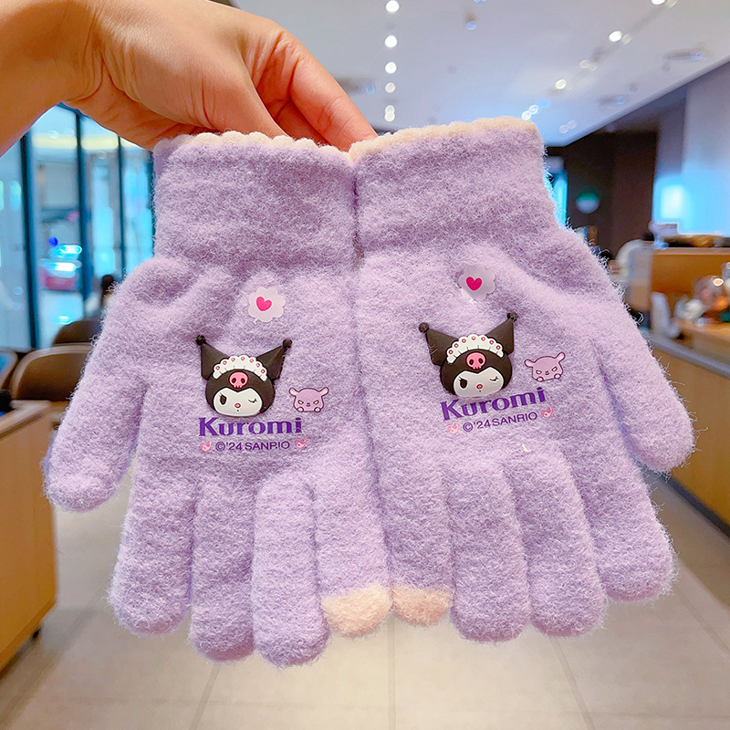 어린이 장갑 가을과 겨울 산리오 쿨로 미 소년과 소녀 초등학생 울 하프 핑거 플립 커버 베어 핑거 글쓰기스토어 가기