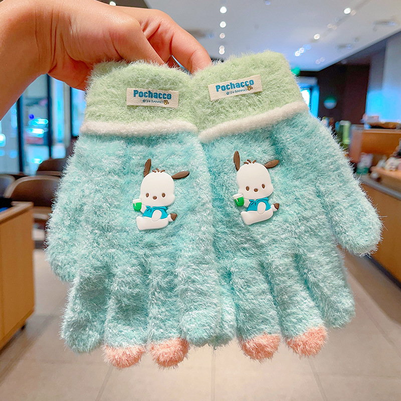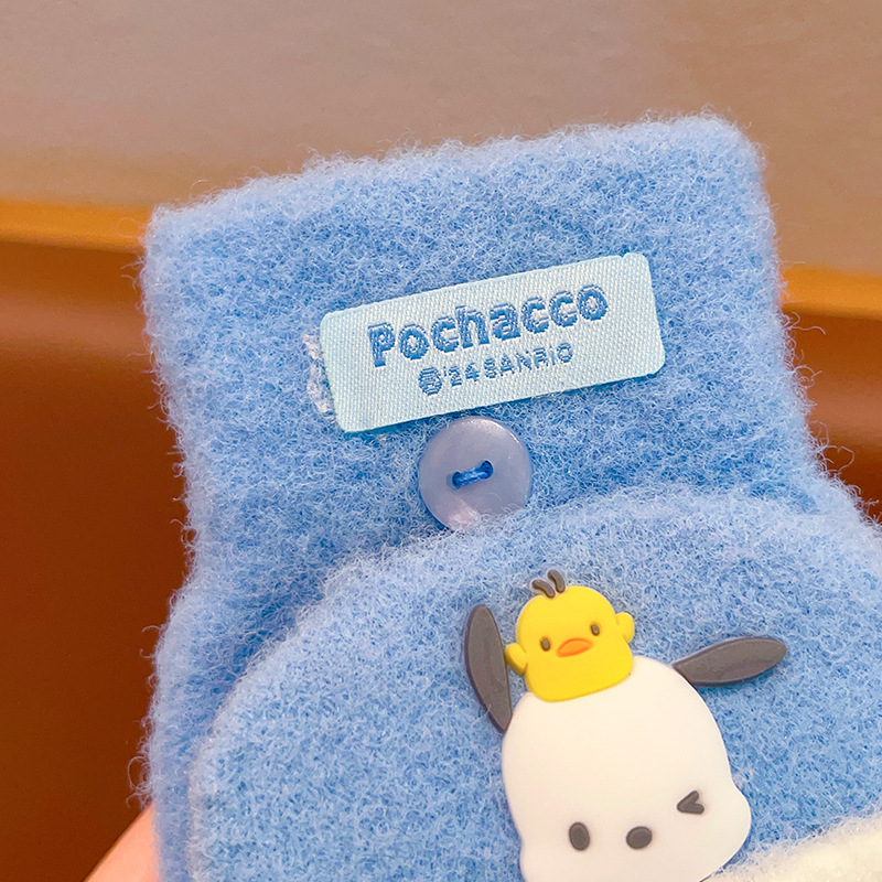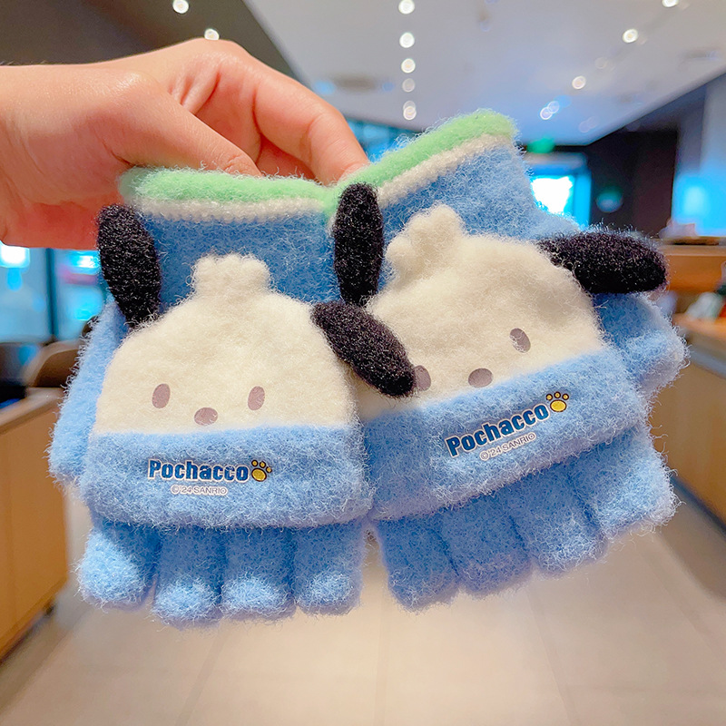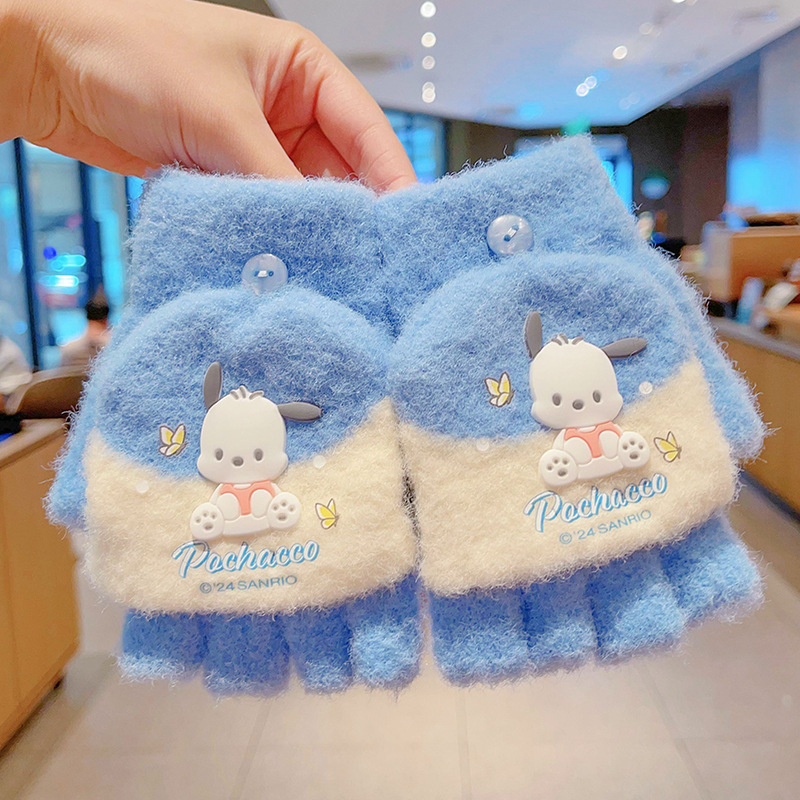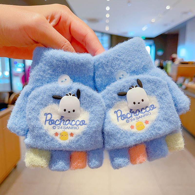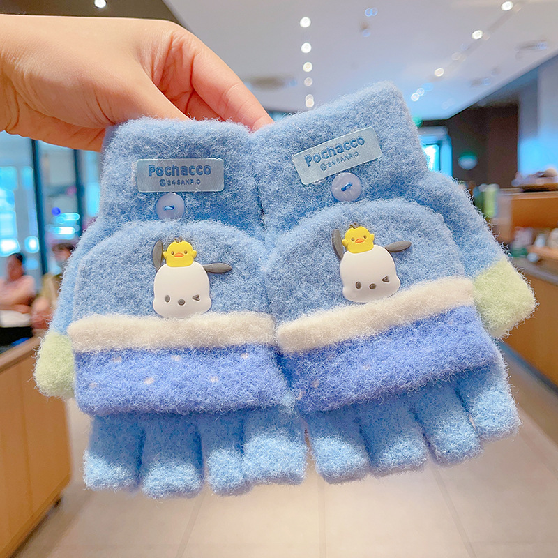 어린이 장갑 가을과 겨울 산리오 쿨로 미 소년과 소녀 초등학생 울 하프 핑거 플립 커버 베어 핑거 글쓰기