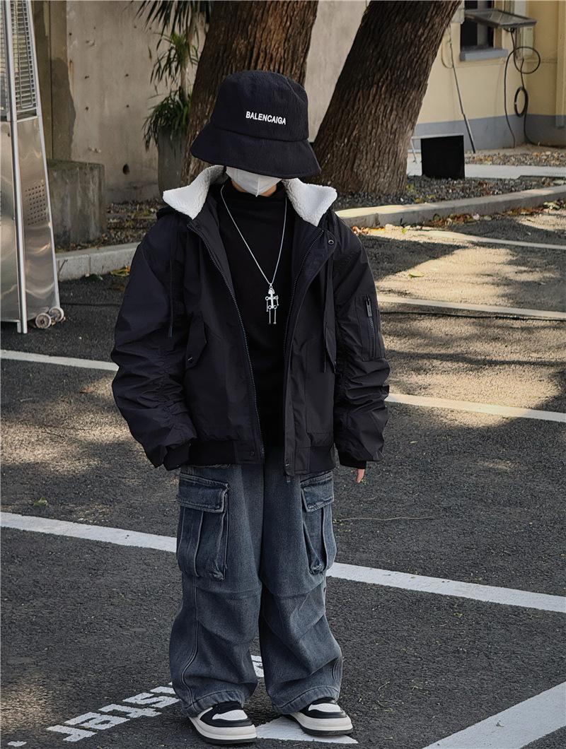 Baoduo 아동복 소년 기모 청바지 겨울 원피스 벨벳 2024 새 바지 두꺼운 100-170 바지스토어 가기