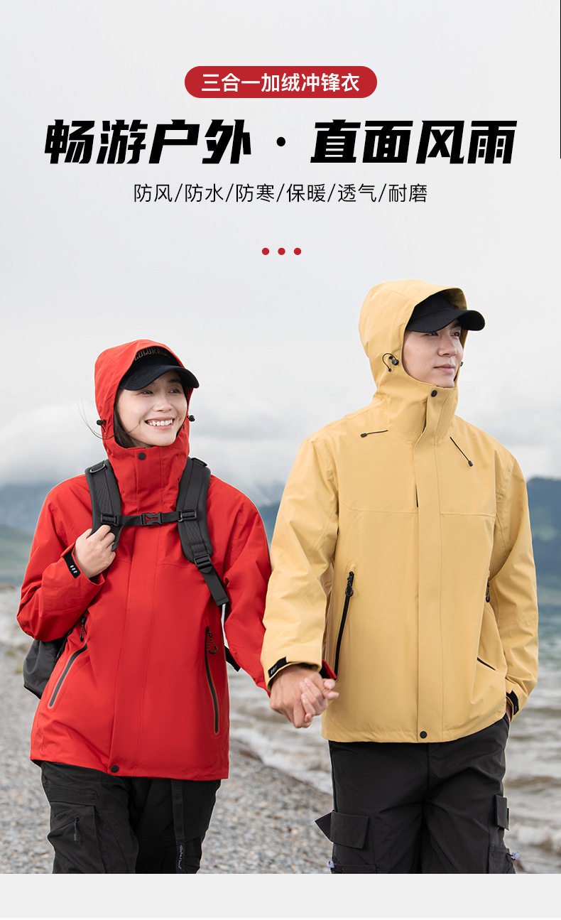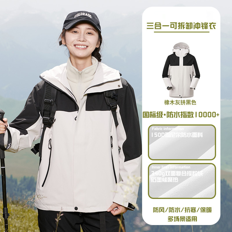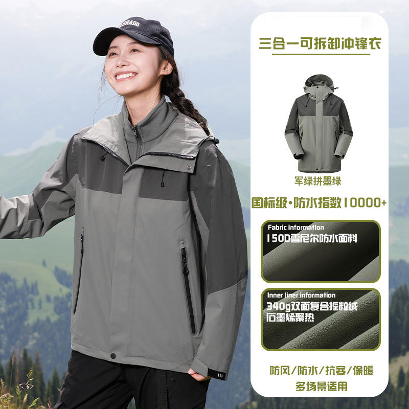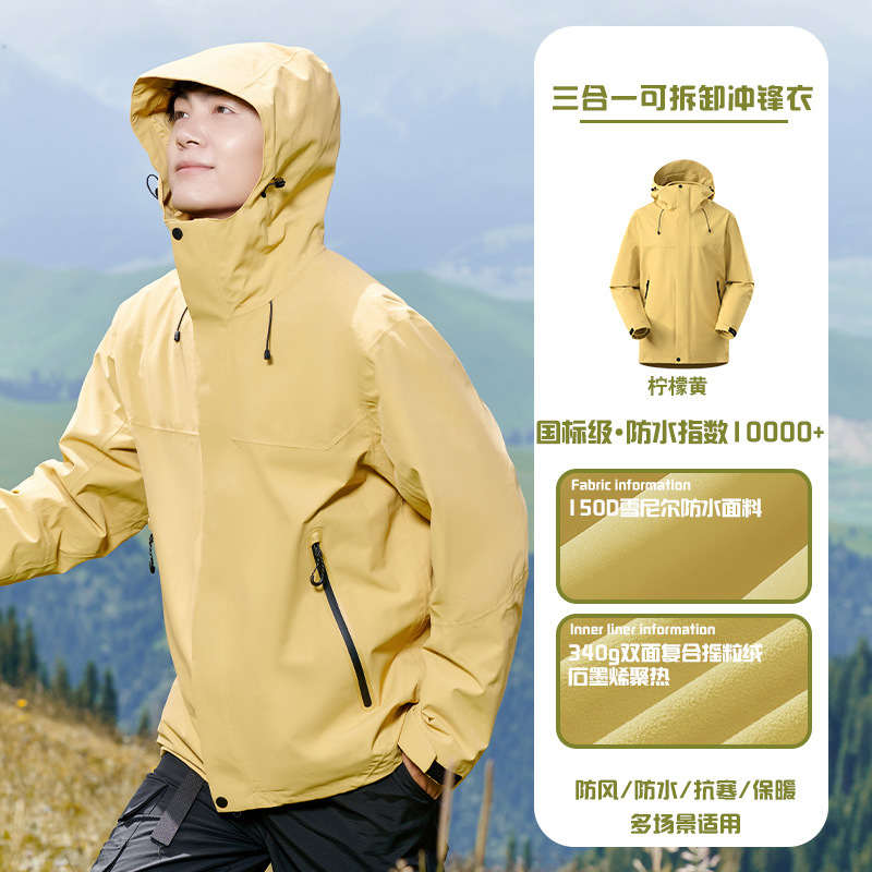 국가 표준 러버 재킷 3-in-one 여성 작업복 남성 후드 재킷 야외 방수 및 방풍 등산 재킷 맞춤형스토어 가기