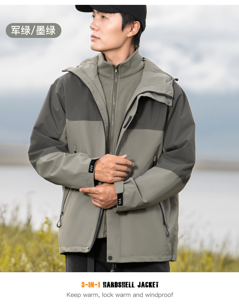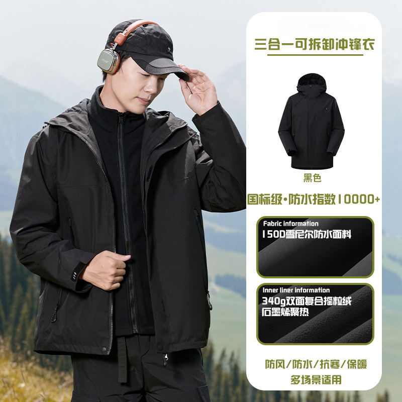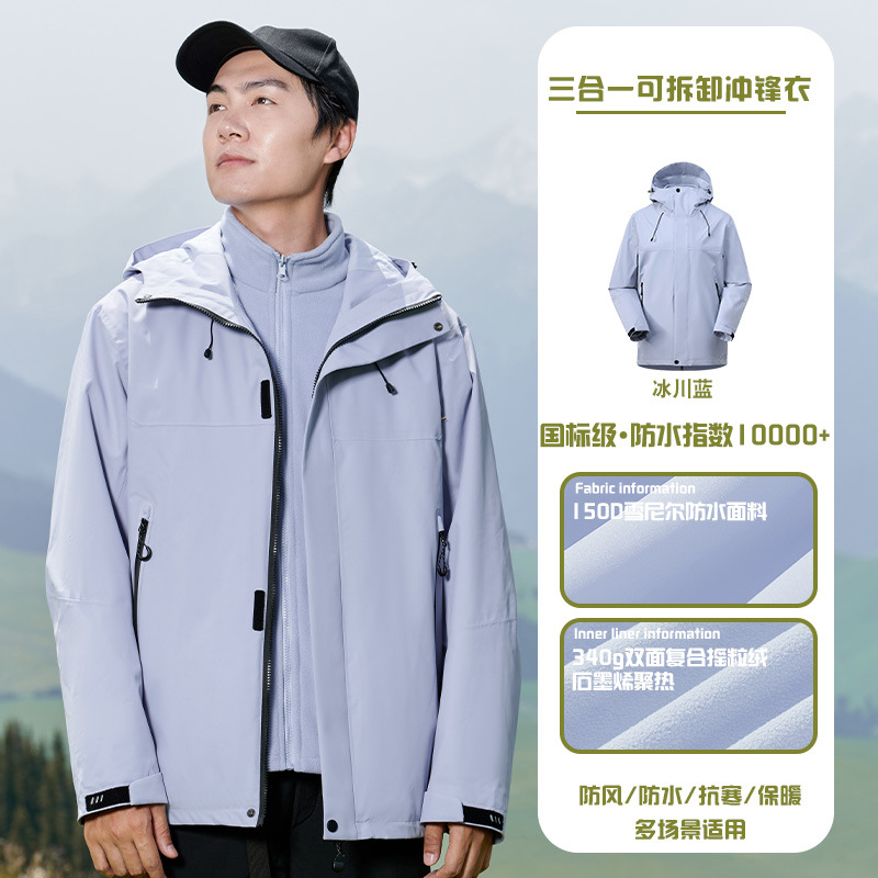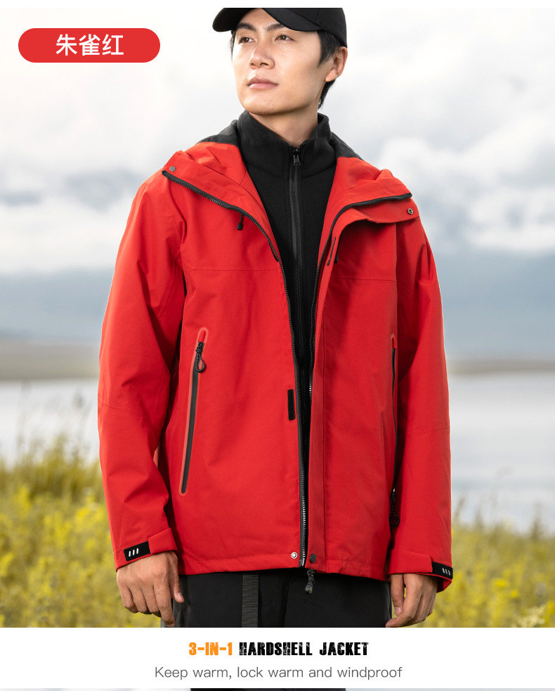 국가 표준 러버 재킷 3-in-one 여성 작업복 남성 후드 재킷 야외 방수 및 방풍 등산 재킷 맞춤형