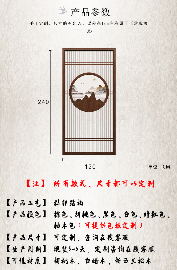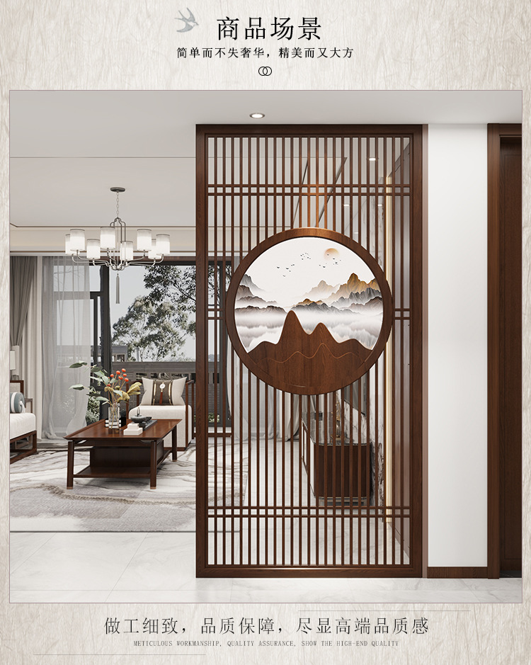 신중국풍 원목 현관 스크린 칸막이 거실 사무실 입구 가림막 격자 장식