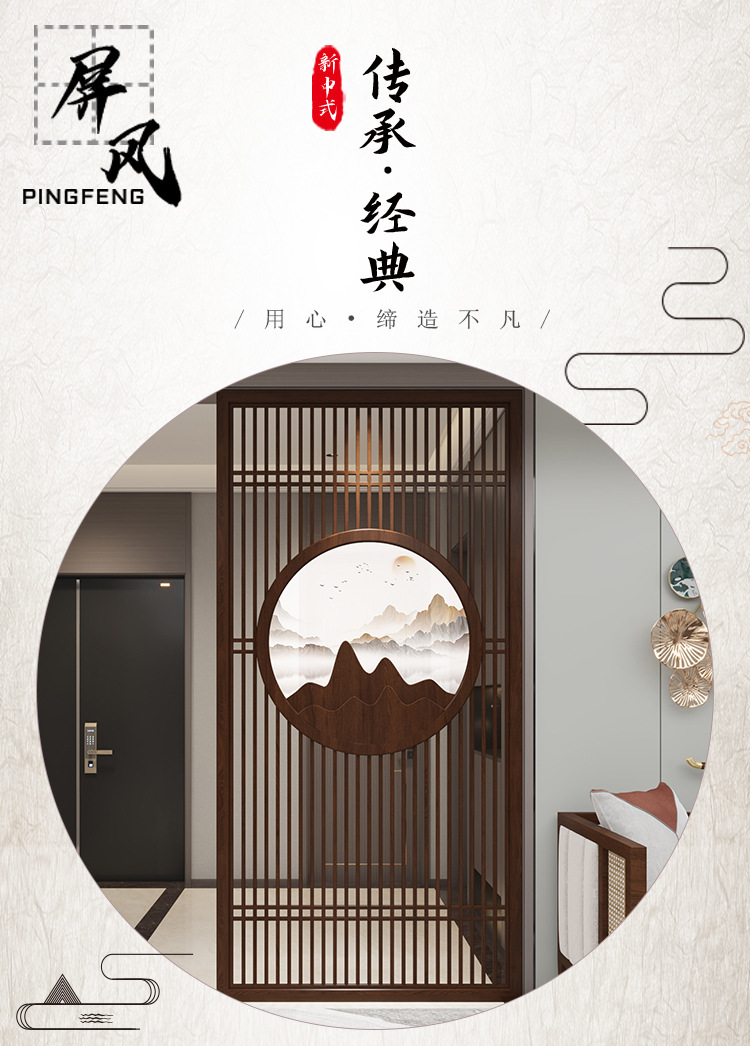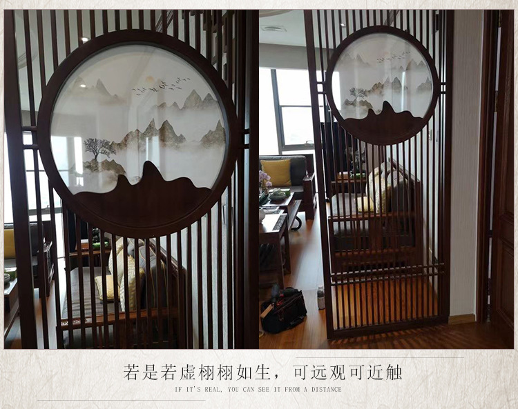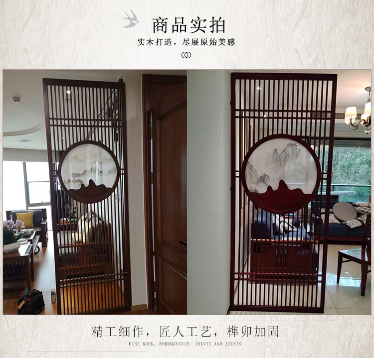 신중국풍 원목 현관 스크린 칸막이 거실 사무실 입구 가림막 격자 장식스토어 가기