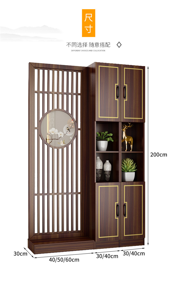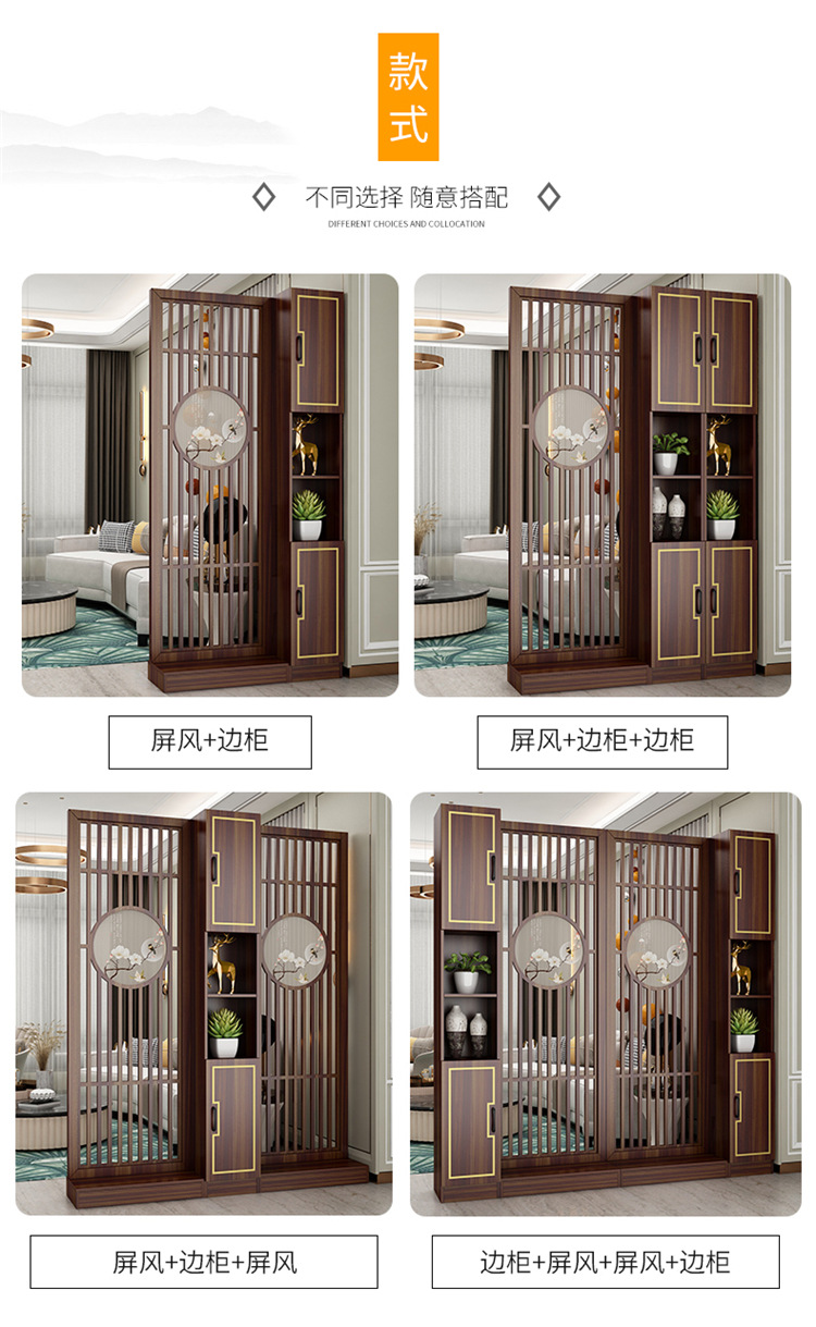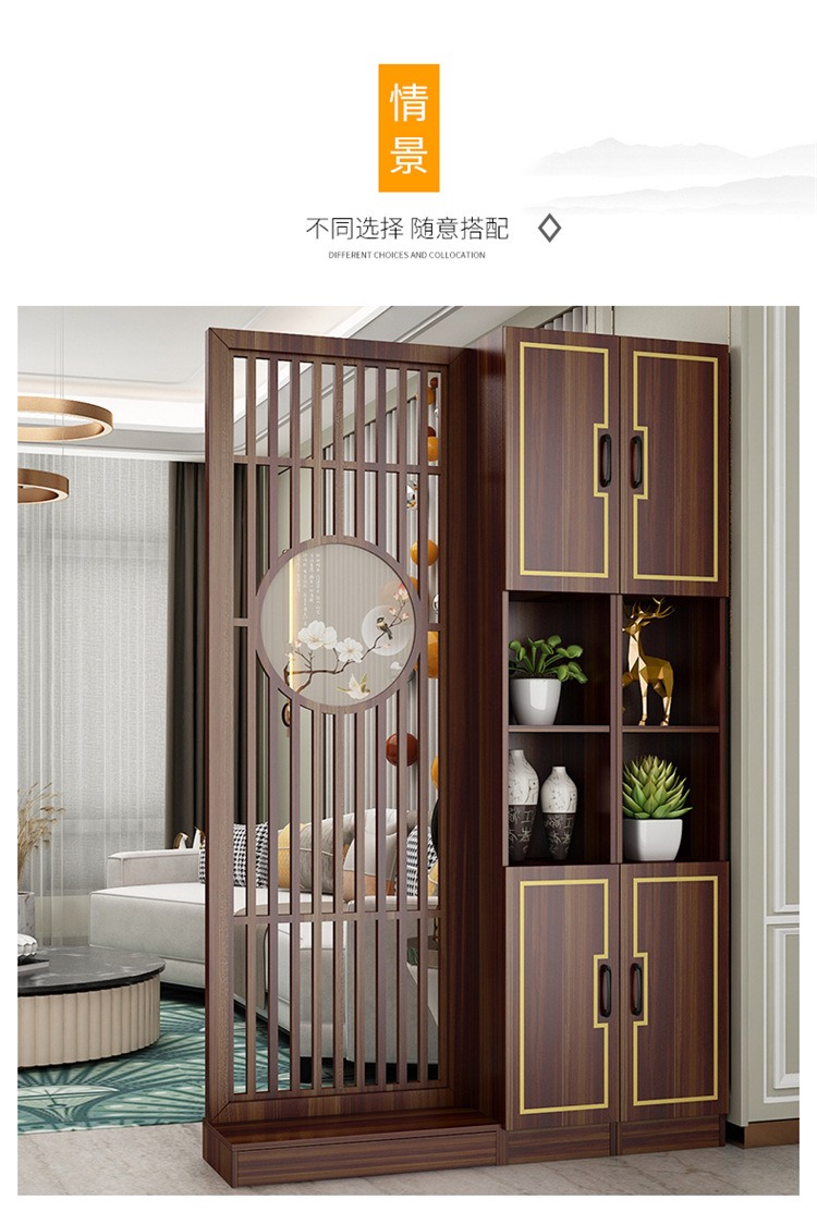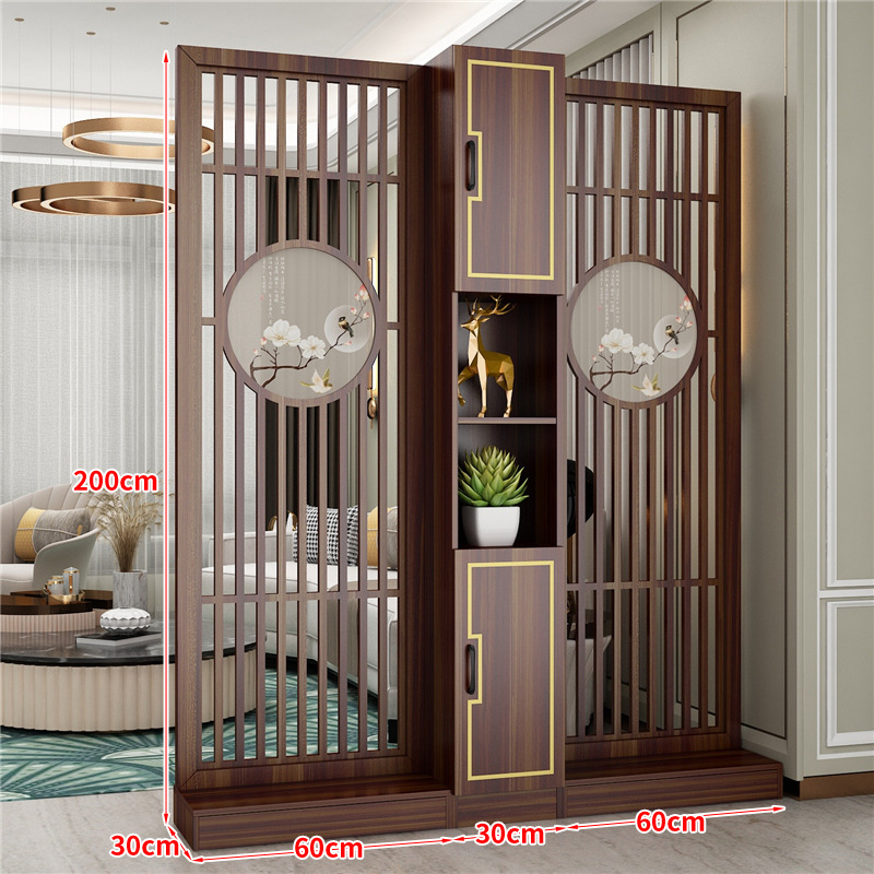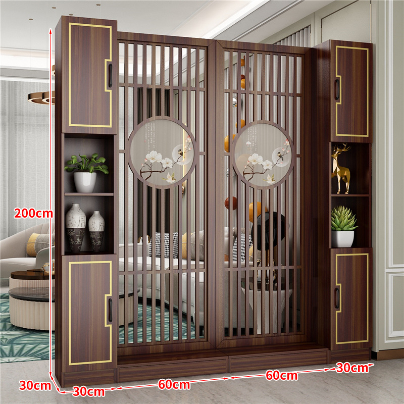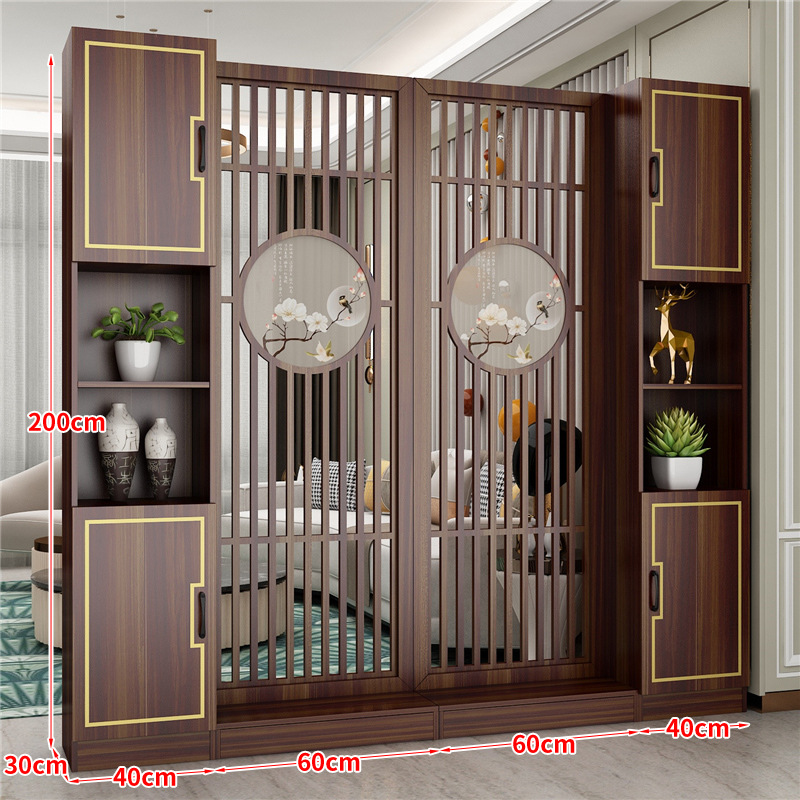 거실 새로운 중국 스타일 스크린 파티션 장식 벽 음영 단단한 나무 저장 랙 빈 현대 빛 럭셔리 입구 캐비닛