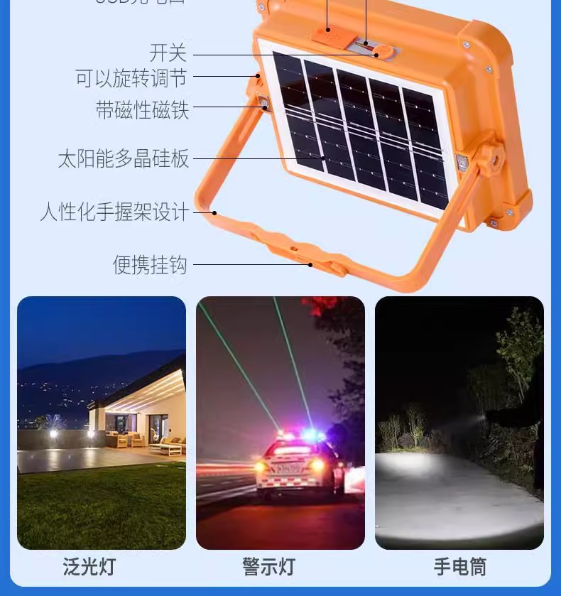 • 폭발적인 1000W 작은 노란색 조명 + 5단계 디밍 + 충전식 휴대폰