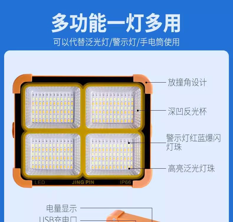 • 폭발적인 100W 작은 노란색 조명 + 5단계 디밍 + 충전식 휴대폰