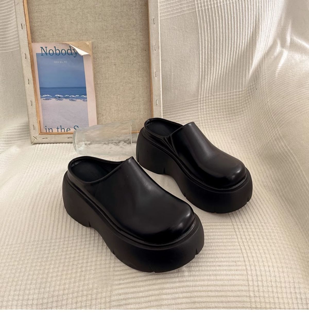 2025년 겨울 신상 여성용 두꺼운 밑창 키높이 슬리퍼, 인기 많은 인터넷 셀럽 스타일, 외출용 통굽 슬리퍼스토어 가기