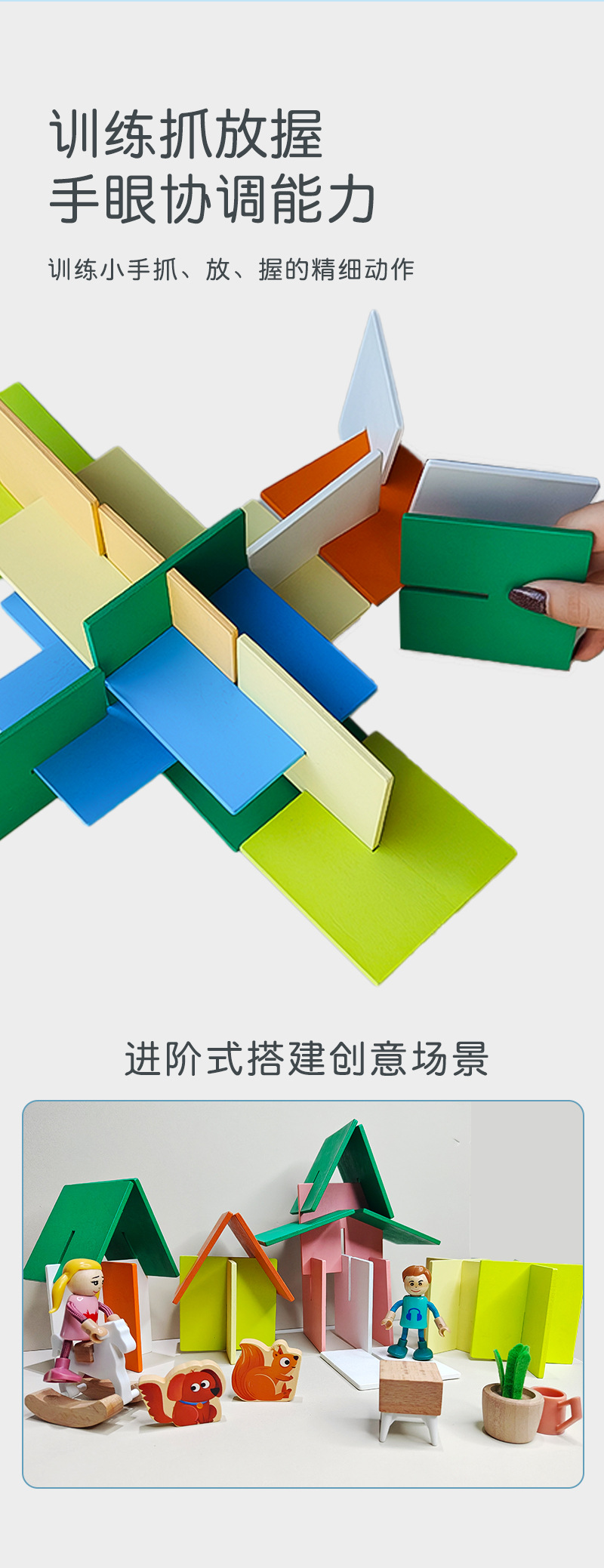 목조 레인보우 빌딩 블록 실내 건축 스플라이스 파일 타워 스택 음악 조기 교육 창조적 인 크로스 스냅 빌딩 블록스토어 가기