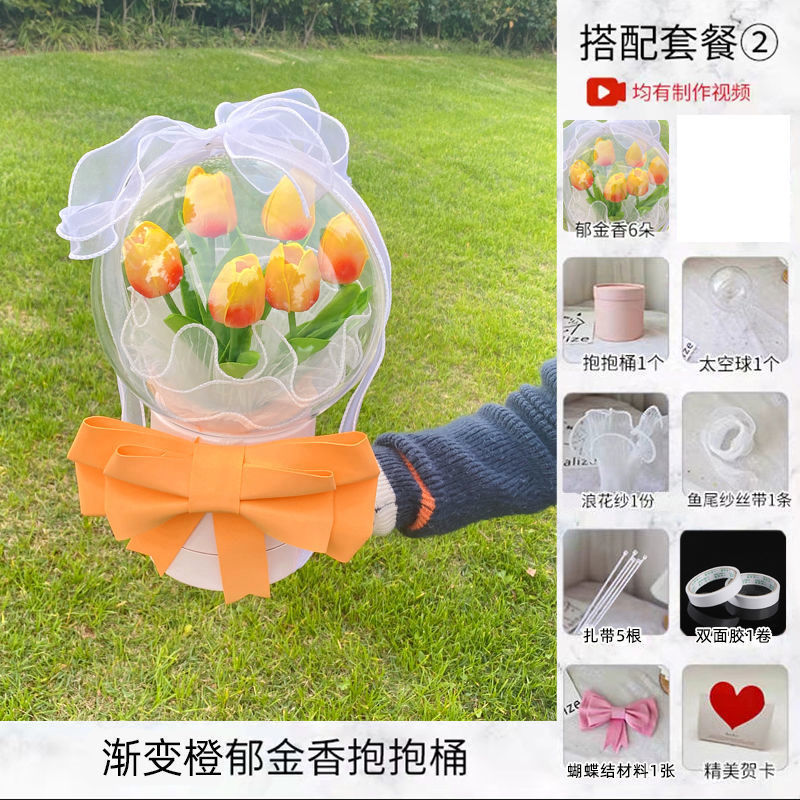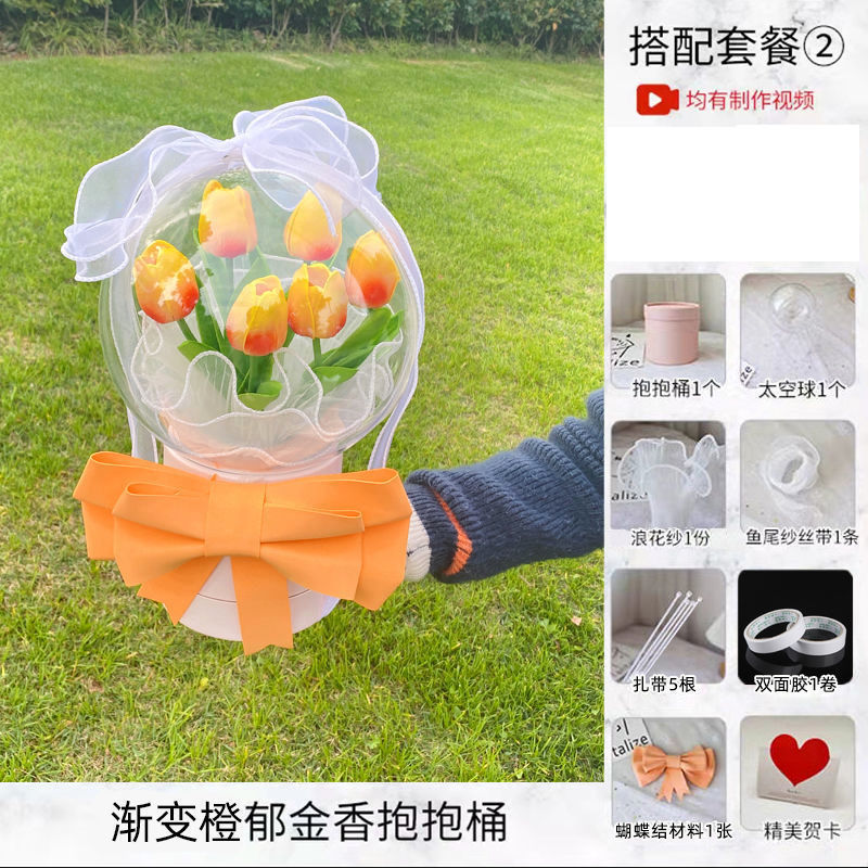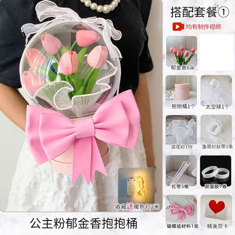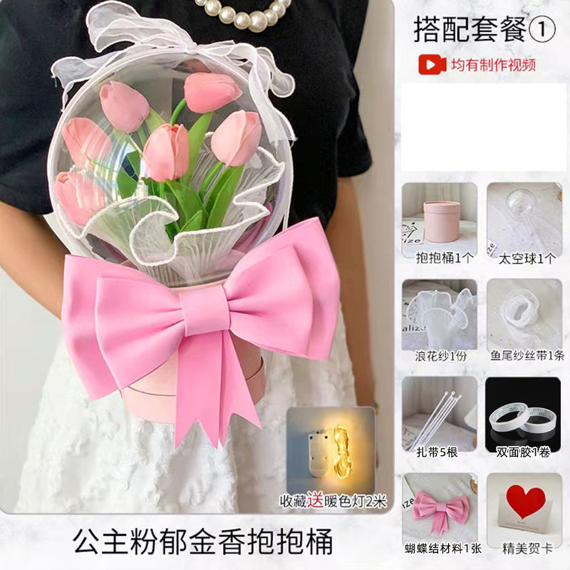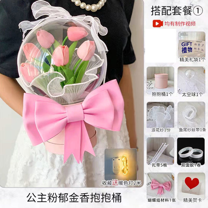 튤립 포옹 배럴 웨이브 볼 꽃다발 여자 친구 생일 여자 친구 Tanabata 발렌타인 데이 도매 DIY 소재 가방