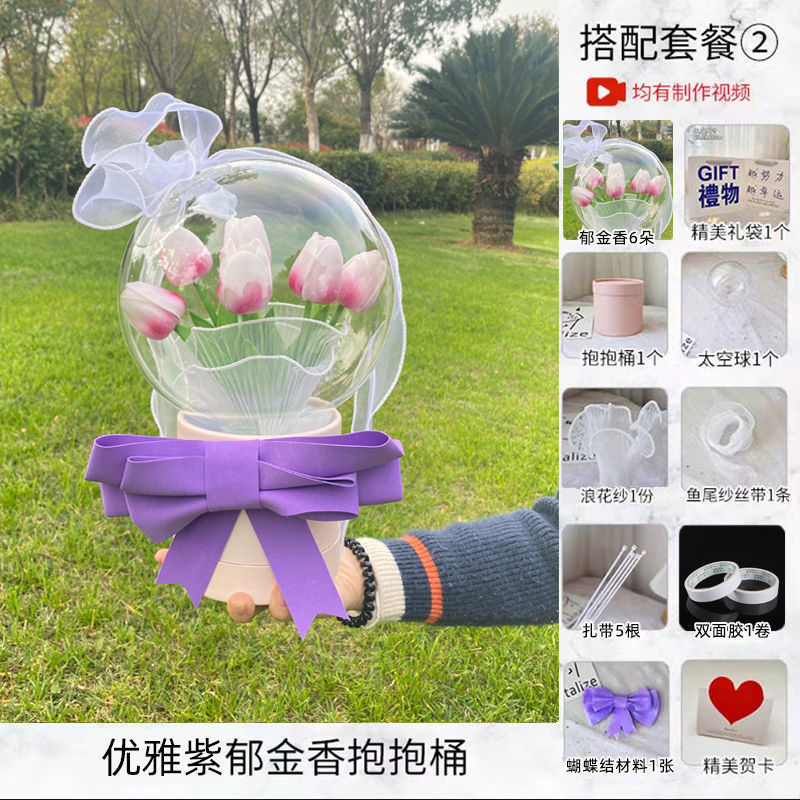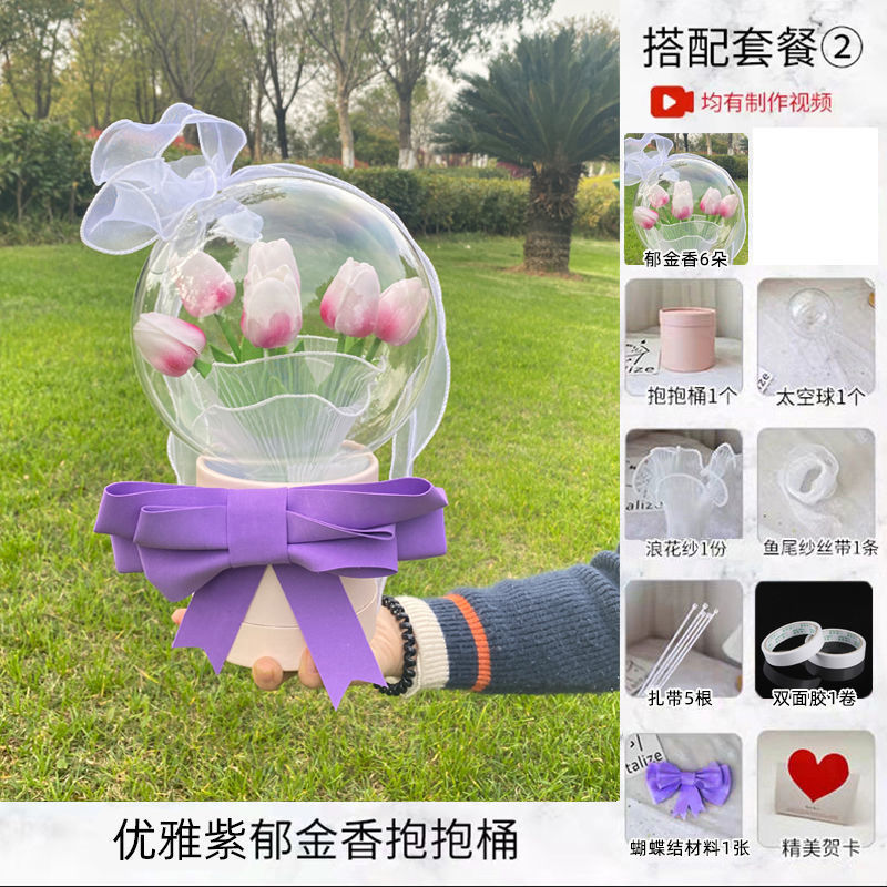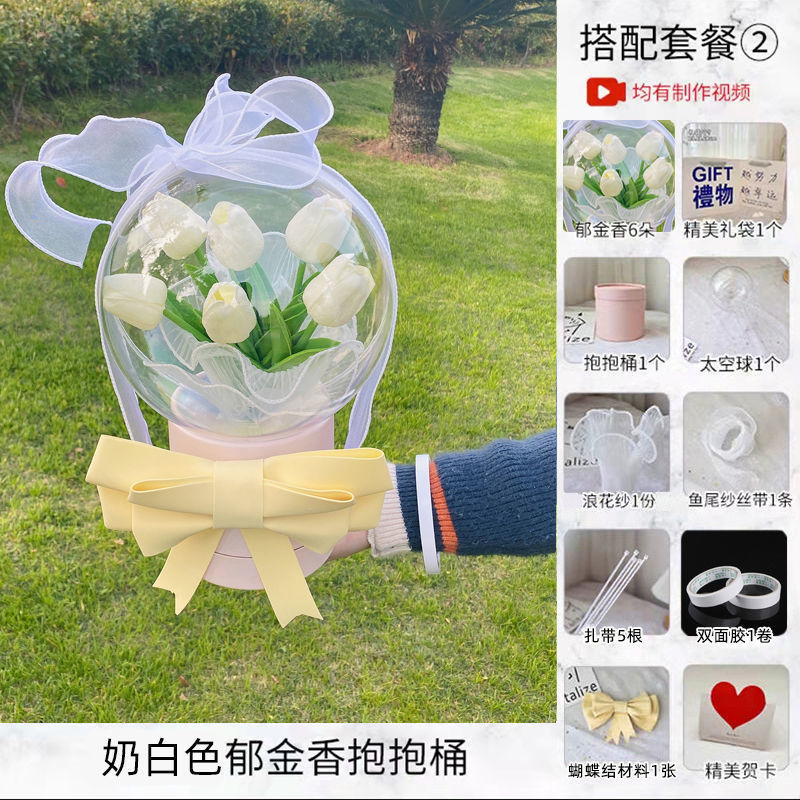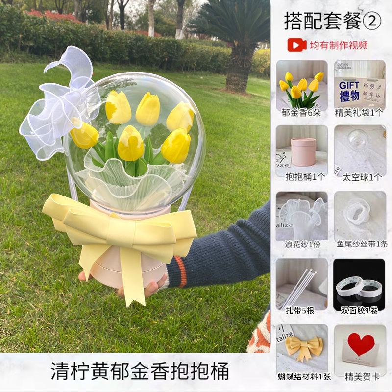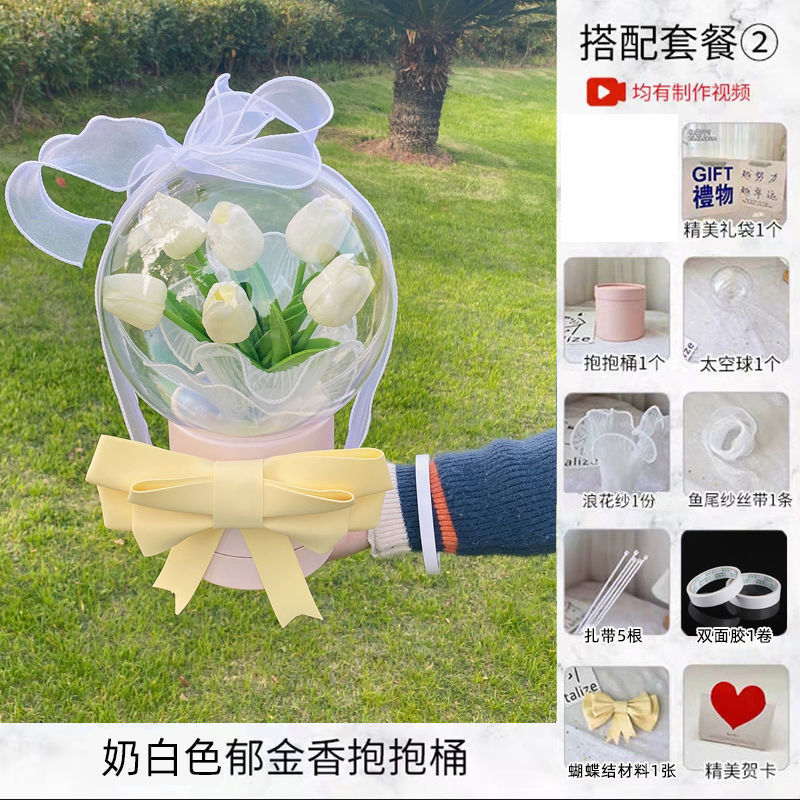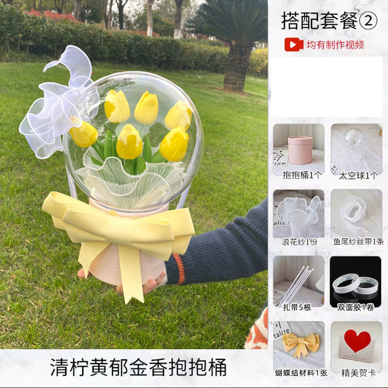 튤립 포옹 배럴 웨이브 볼 꽃다발 여자 친구 생일 여자 친구 Tanabata 발렌타인 데이 도매 DIY 소재 가방