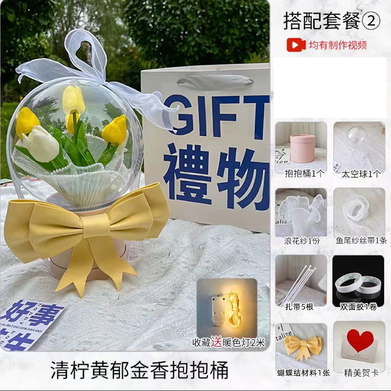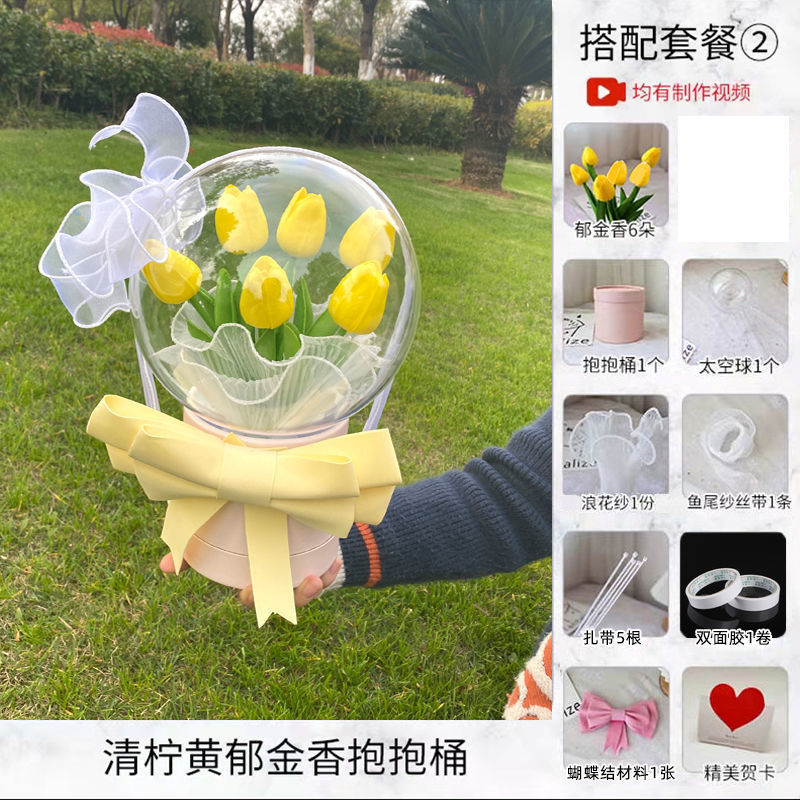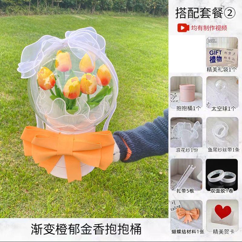 튤립 포옹 배럴 웨이브 볼 꽃다발 여자 친구 생일 여자 친구 Tanabata 발렌타인 데이 도매 DIY 소재 가방스토어 가기
