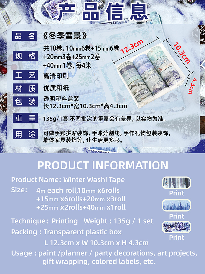 DIY 장식 손 계정 테이프 눈 멀티 사이즈 푸른 겨울과 종이 테이프 아마존 공급 국경 도매스토어 가기