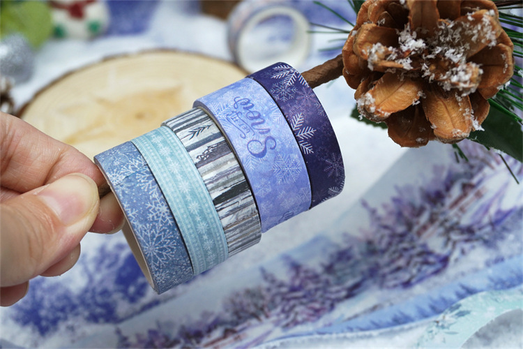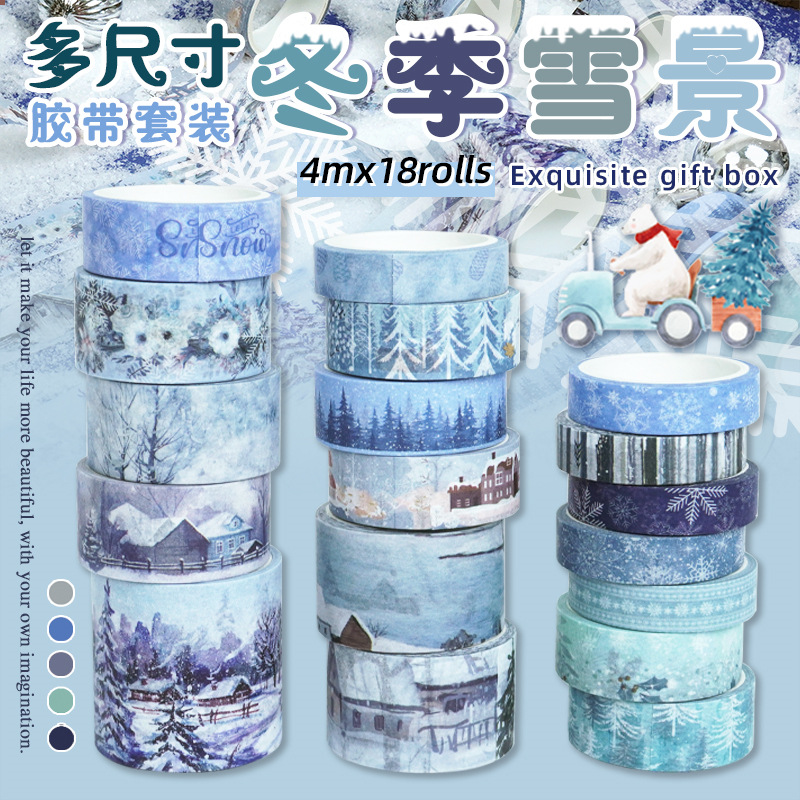 DIY 장식 손 계정 테이프 눈 멀티 사이즈 푸른 겨울과 종이 테이프 아마존 공급 국경 도매