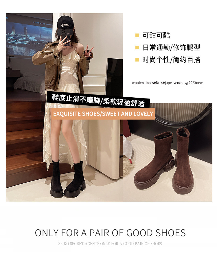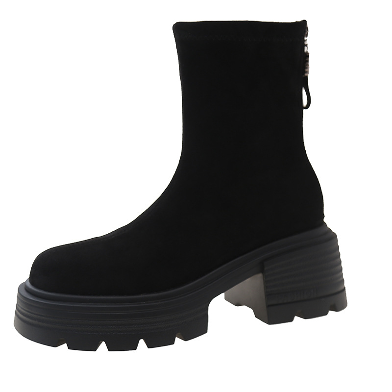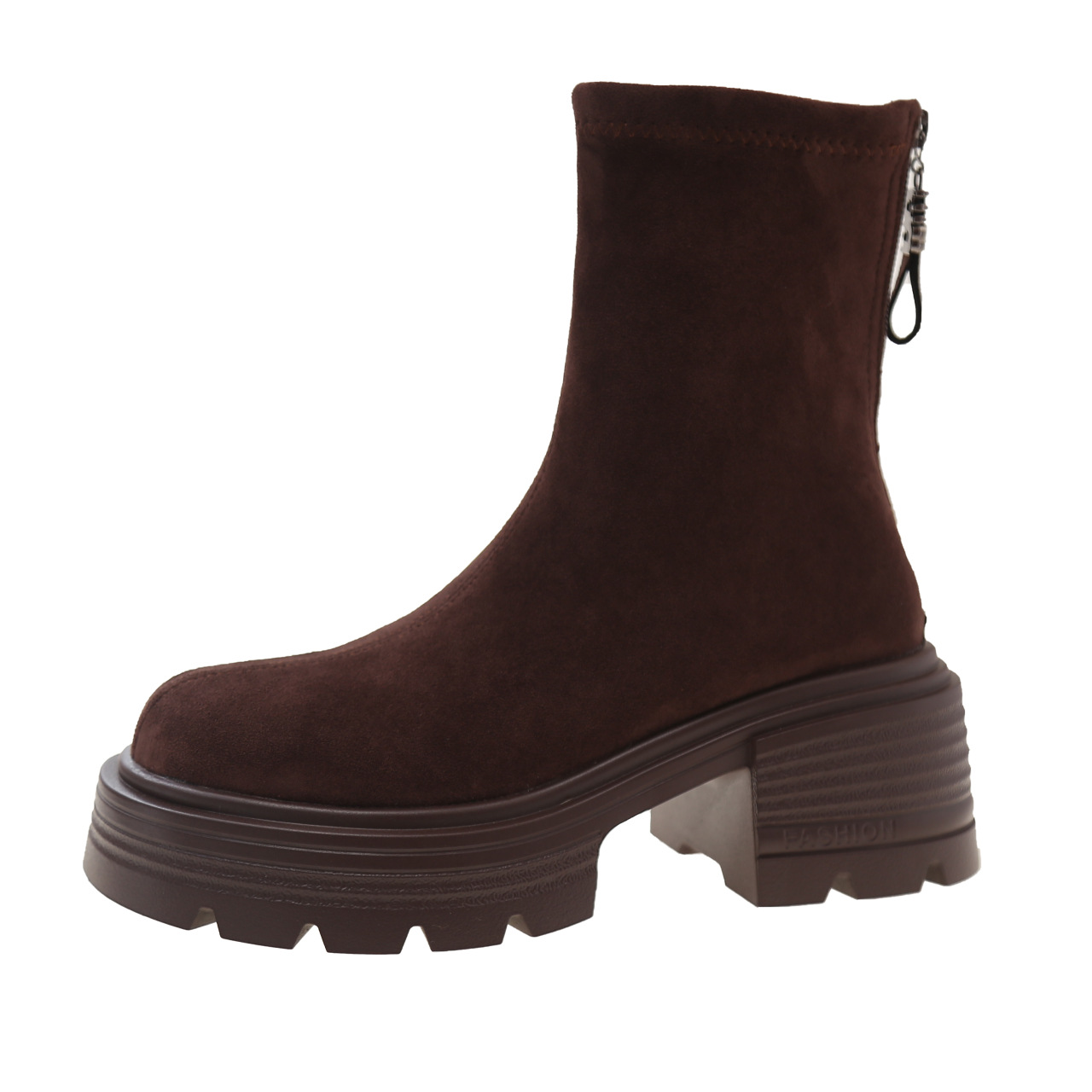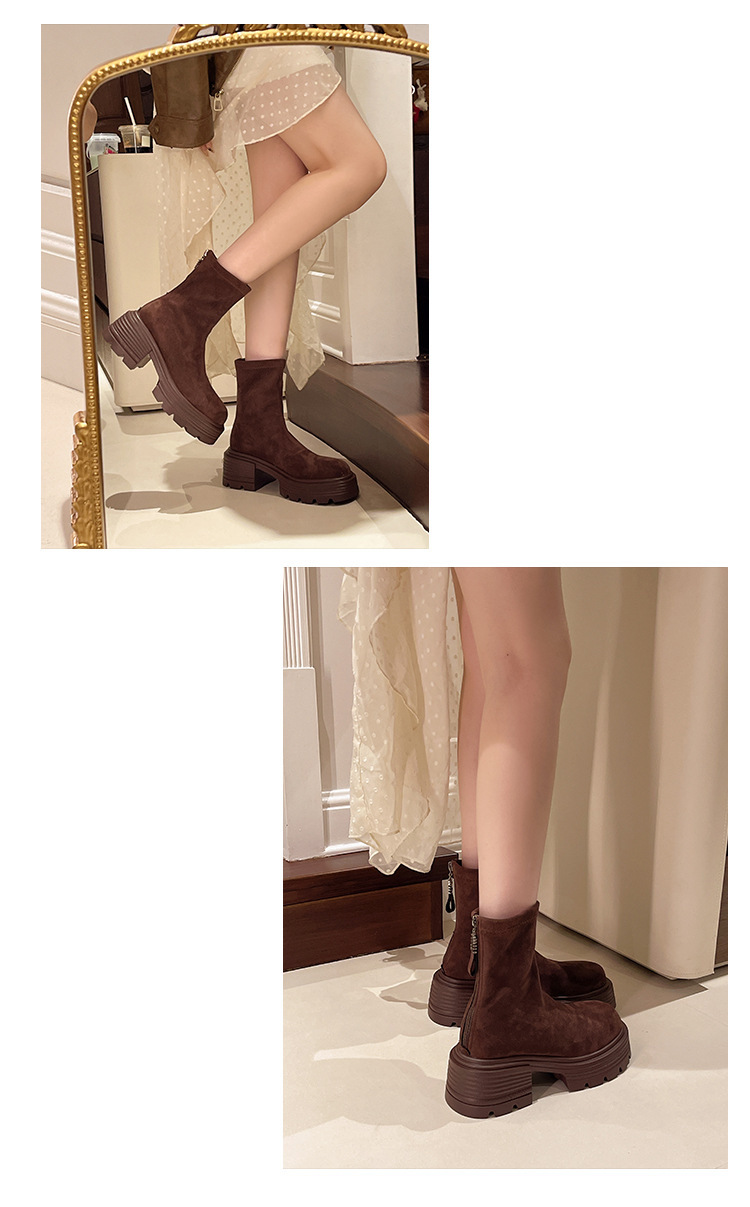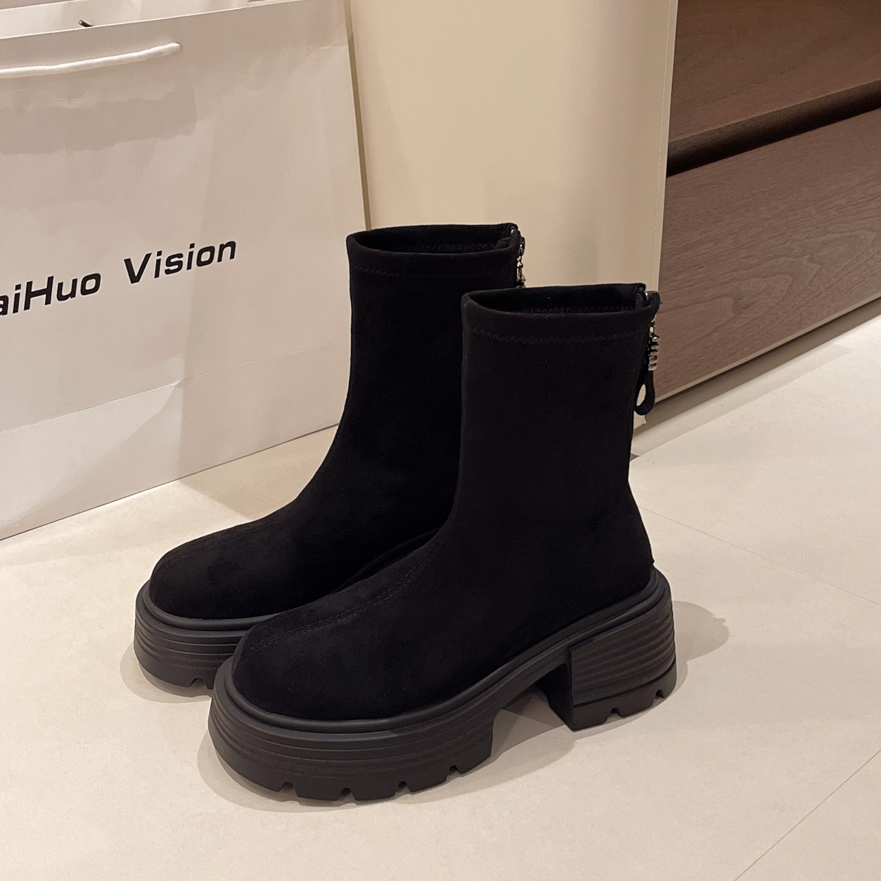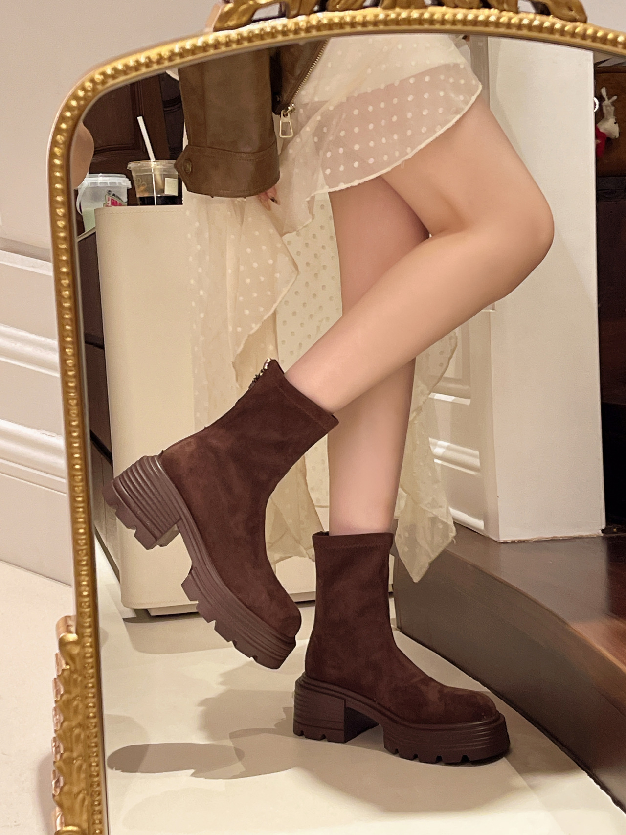 빈티지 프로스트 가죽 리어 지퍼 스키니 부츠 2024 가을 새로운 미드 실린더 라운드 발가락 유럽 역 패션 마틴 부츠스토어 가기